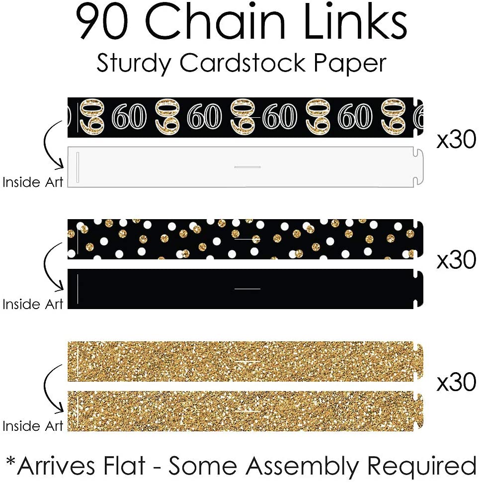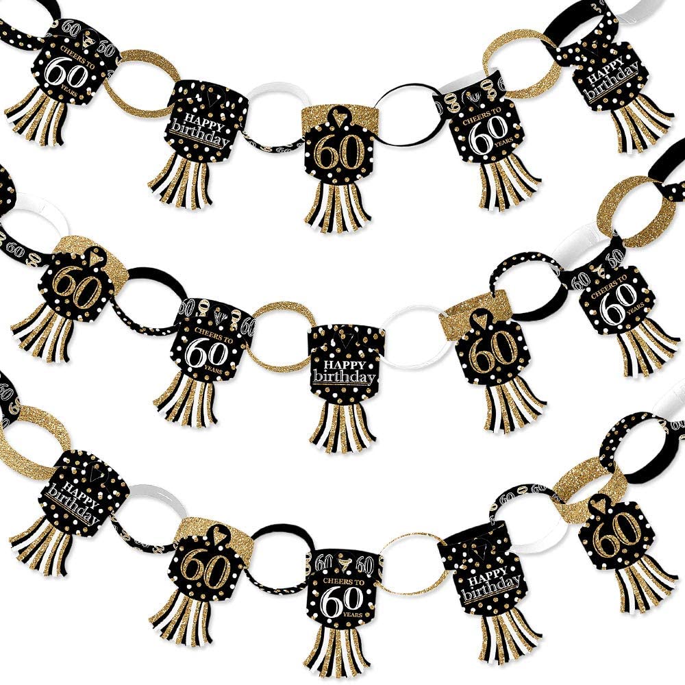 Adult 60th Birthday - Gold - 90 Chain Links and 30 Paper Tassels Decoration Kit - Birthday Party Paper Chains Garland - 21 feet is backordered and will ship as soon as it is back in stock.