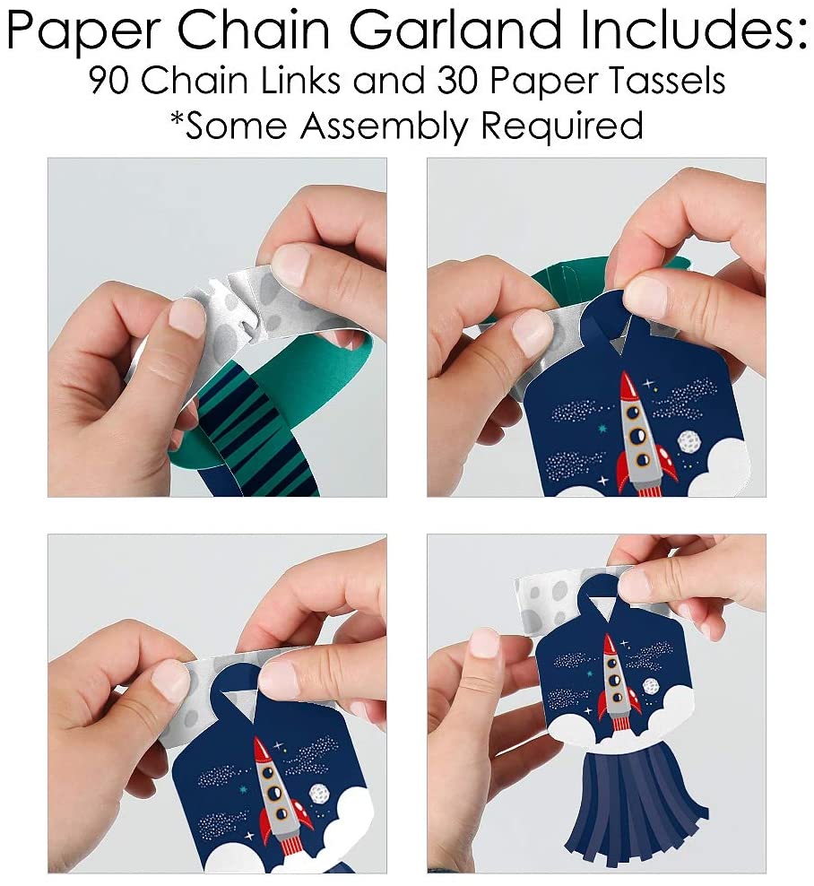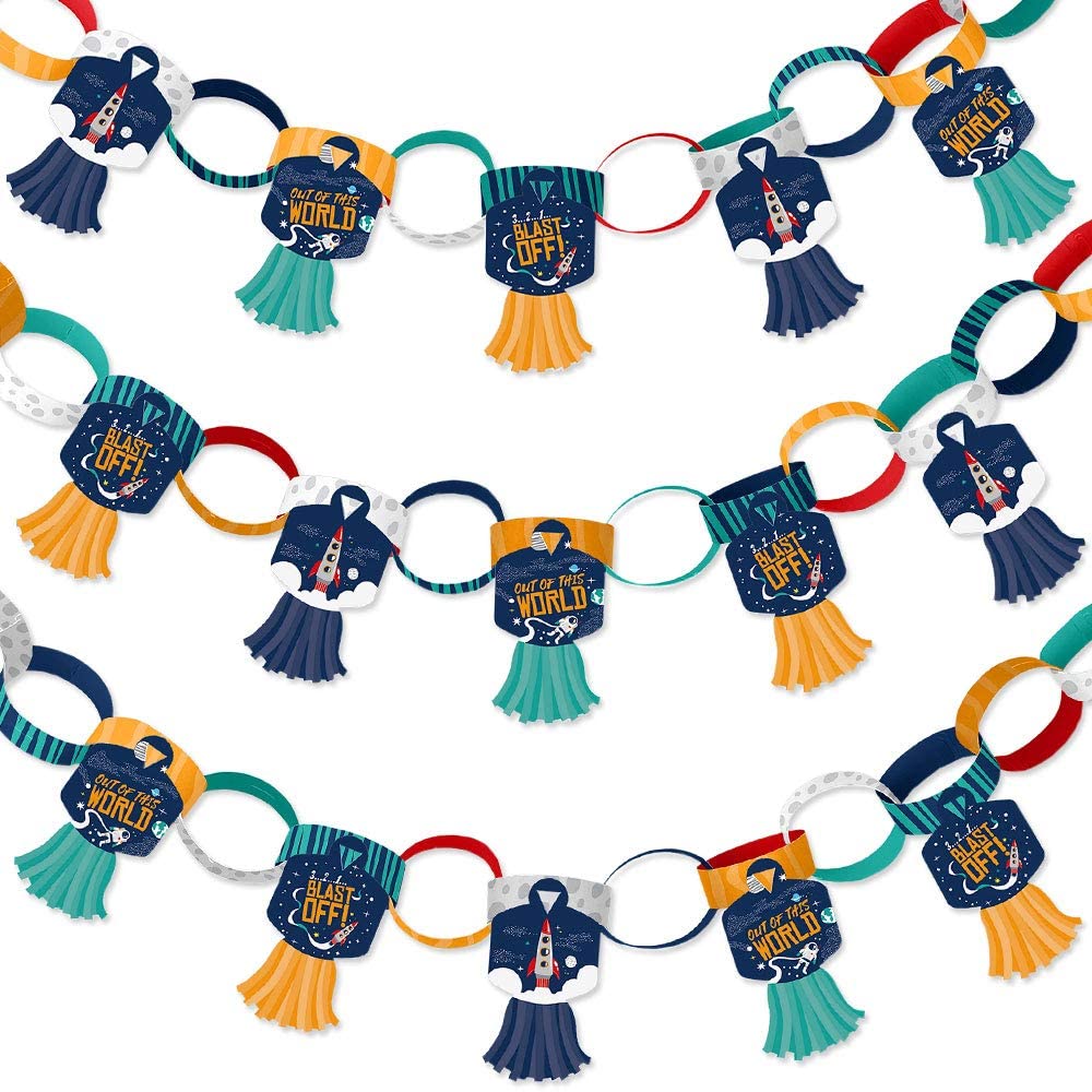 Blast Off to Outer Space - 90 Chain Links and 30 Paper Tassels Decoration Kit - Rocket Ship Baby Shower or Birthday Party Paper Chains Garland - 21 feet is backordered and will ship as soon as it is back in stock.