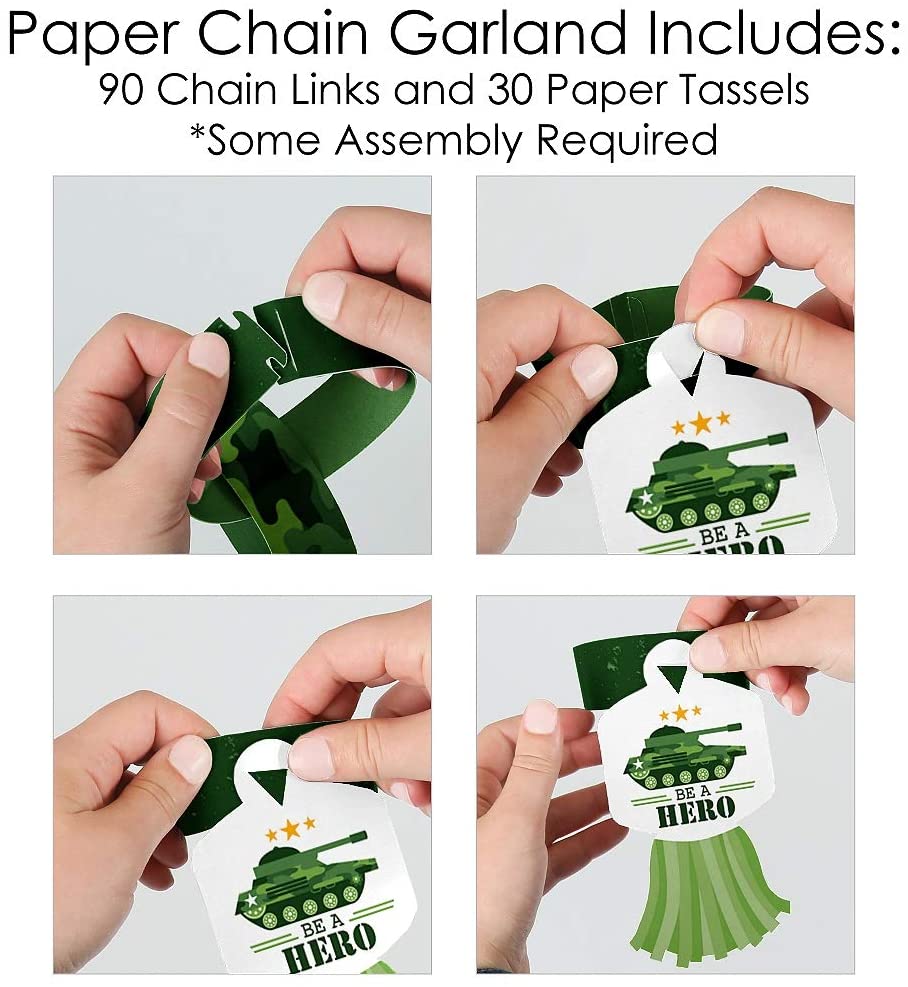 Camo Hero - 90 Chain Links and 30 Paper Tassels Decoration Kit - Army Military Camouflage Party Paper Chains Garland - 21 feet is backordered and will ship as soon as it is back in stock.