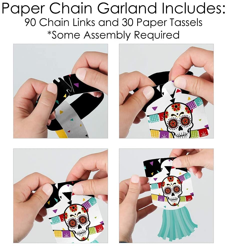 Day of the Dead - 90 Chain Links and 30 Paper Tassels Decoration Kit - Halloween Sugar Skull Party Paper Chains Garland - 21 feet is backordered and will ship as soon as it is back in stock.