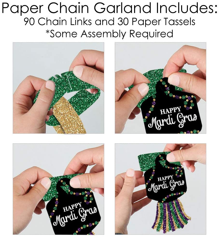 Mardi Gras - 90 Chain Links and 30 Paper Tassels Decoration Kit - Masquerade Party Paper Chains Garland - 21 feet is backordered and will ship as soon as it is back in stock.