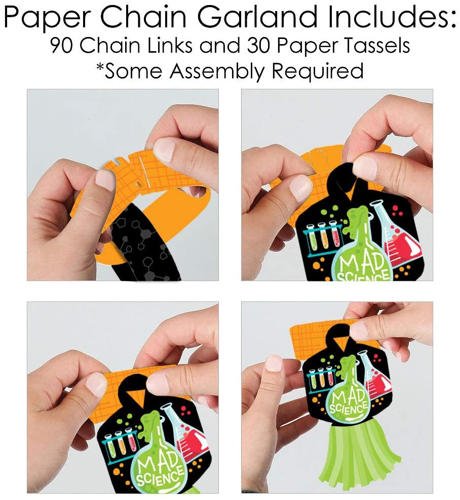 Scientist Lab - 90 Chain Links and 30 Paper Tassels Decoration Kit - Mad Science Baby Shower or Birthday Party Paper Chains Garland - 21 feet is backordered and will ship as soon as it is back in stock.