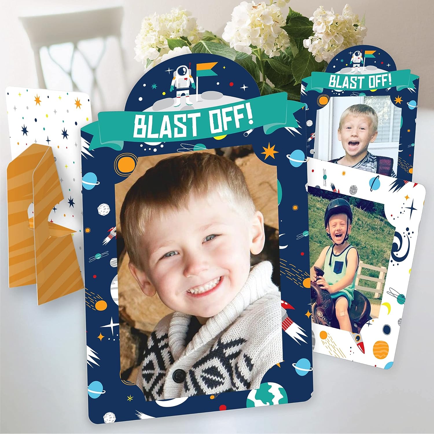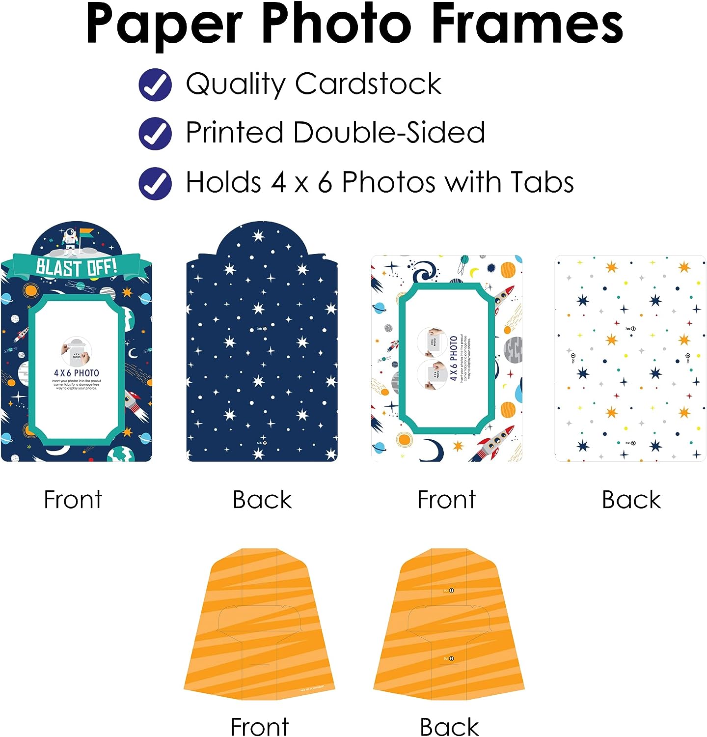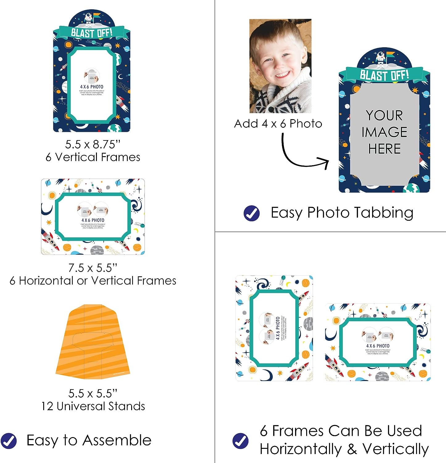 Blast Off to Outer Space - Rocket Ship Baby Shower or Birthday Party 4x6 Picture Display - Paper Photo Frames - Set of 12 is backordered and will ship as soon as it is back in stock.