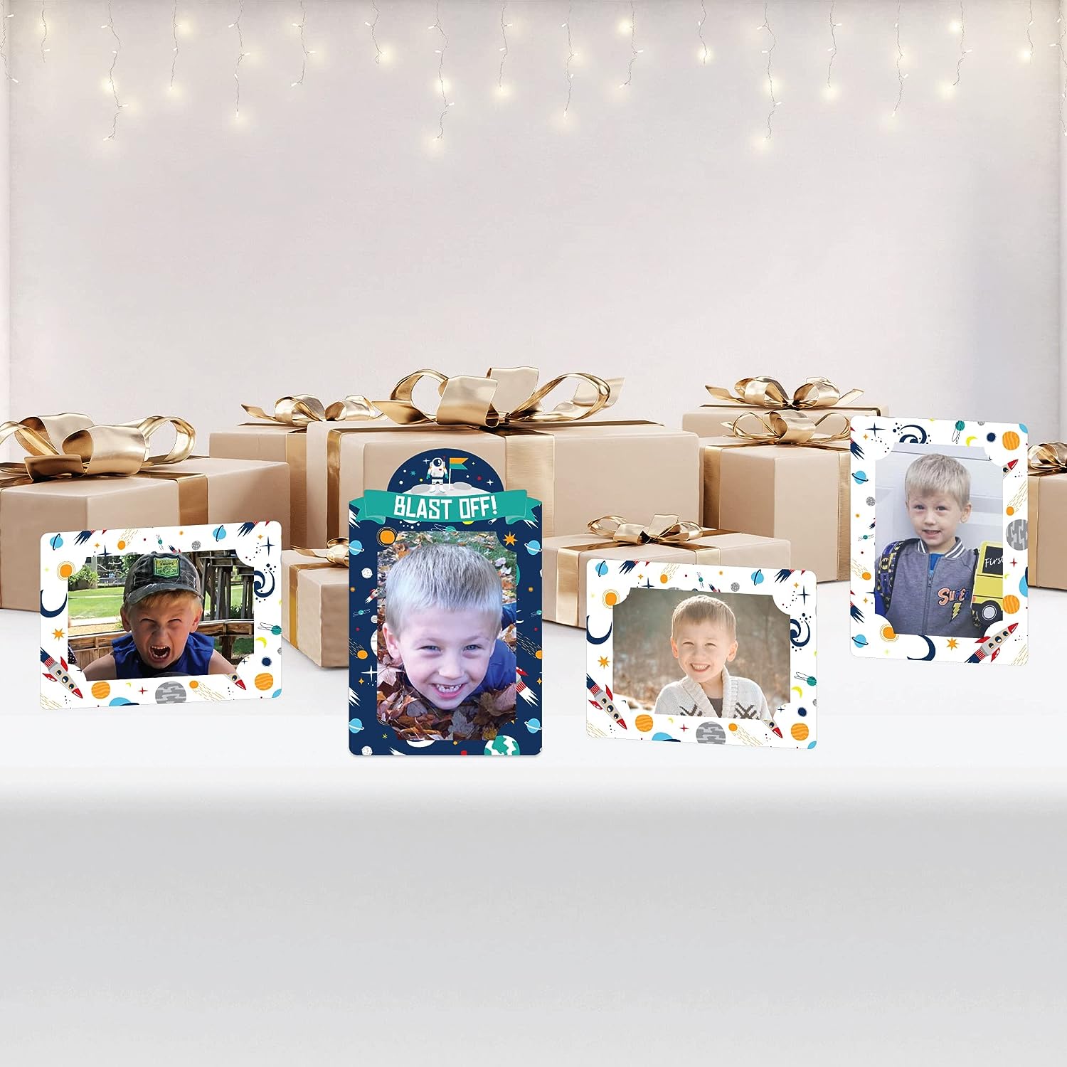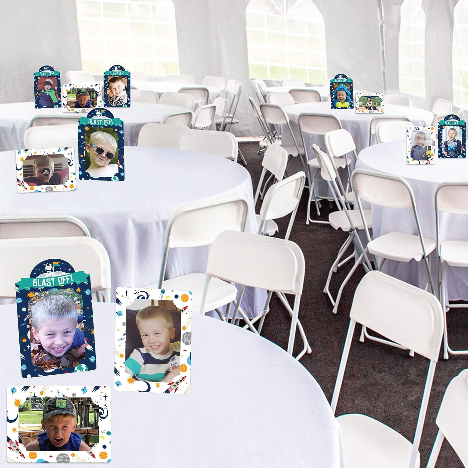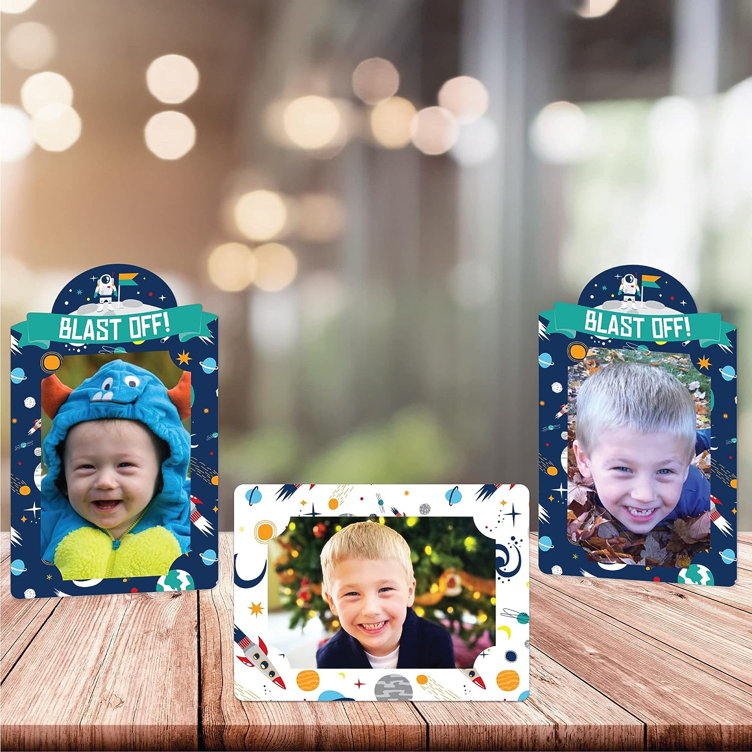 Blast Off to Outer Space - Rocket Ship Baby Shower or Birthday Party 4x6 Picture Display - Paper Photo Frames - Set of 12 is backordered and will ship as soon as it is back in stock.