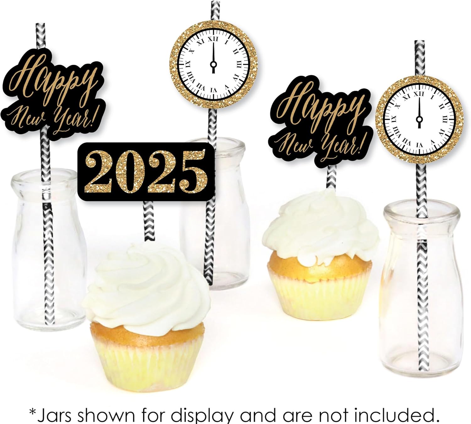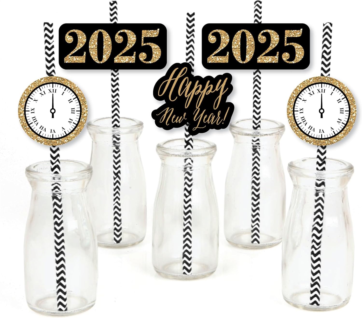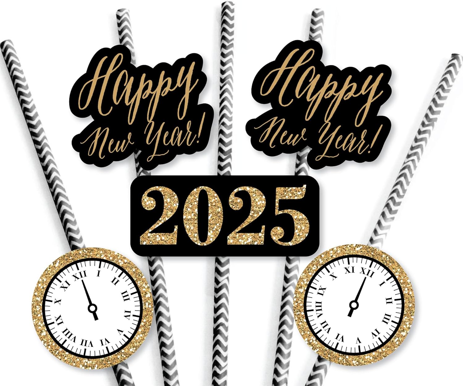 New Year's Eve - Gold Paper Straw Decor - 2025 New Years Eve Party Striped Decorative Straws - Set of 24 is backordered and will ship as soon as it is back in stock.
