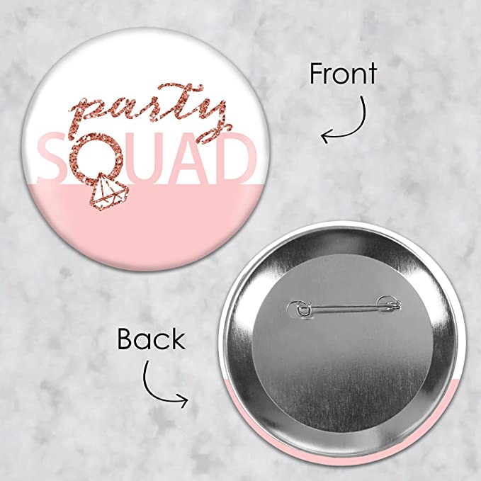 • STURDY AND DURABLE: Bride Squad Pinback Buttons are made with sturdy, metal backers and shells with a glossy finish. Buttons are reusable and can easily be cleaned as needed.