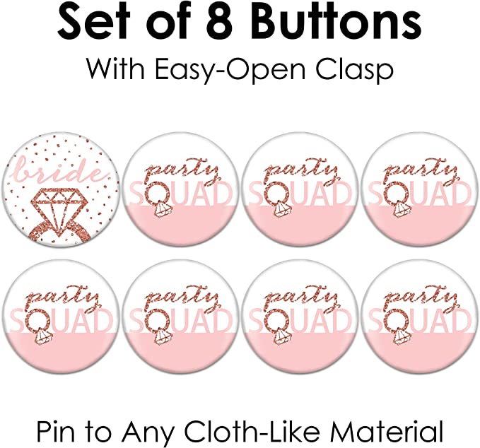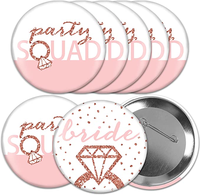 • MESSAGES MADE-EASY: Bride Squad Pinback Buttons are round-shaped, measuring 3 inches in diameter. Each set includes 1 Bride and 7 Party Squad, easy-to-wear buttons; perfect for making a statement! Pass out to your group at bachelorette parties, bridal showers, and special gatherings, or hand out individually.