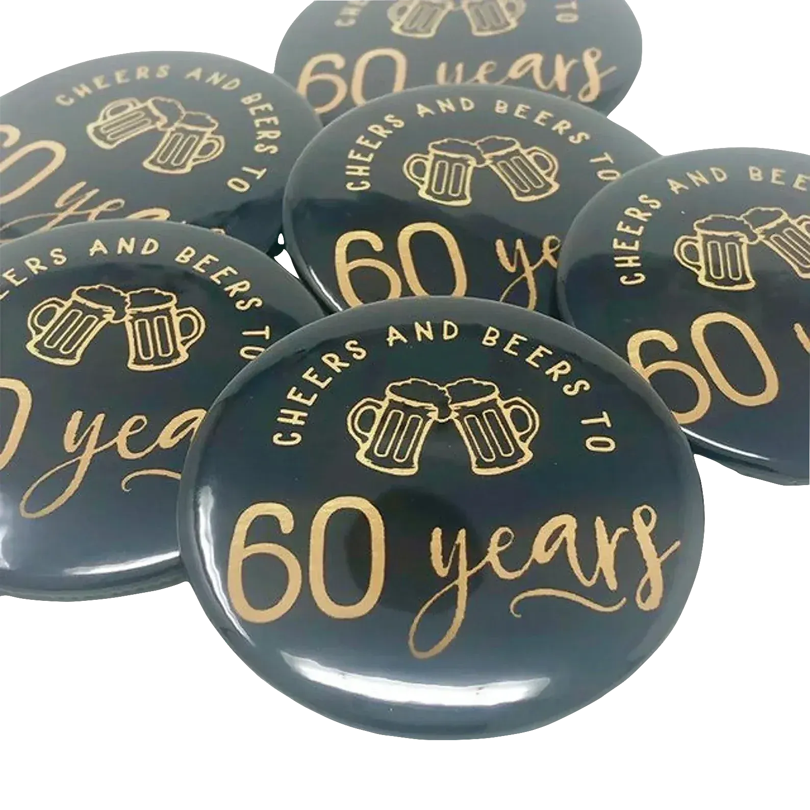 Cheers and Beers to 60 years Pinback Button 3 Inch - 1 is backordered and will ship as soon as it is back in stock.