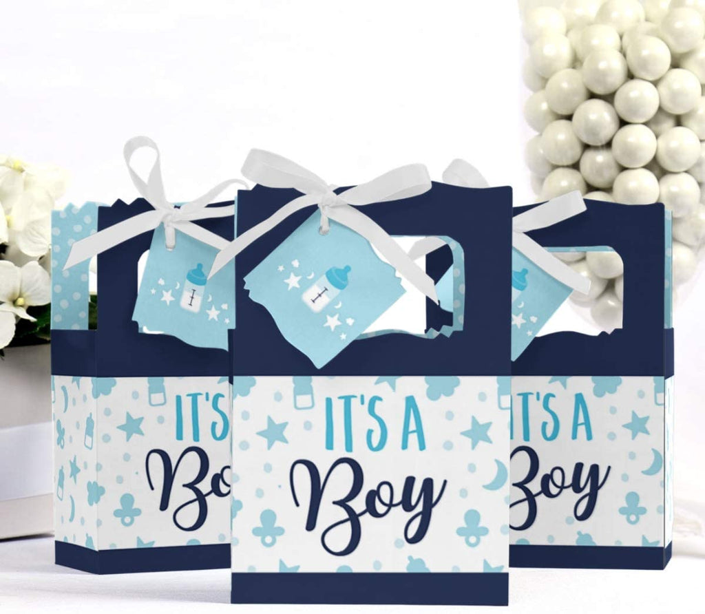 It’s a Boy - Blue Baby Shower Favor Boxes - Set of 12 is backordered and will ship as soon as it is back in stock.