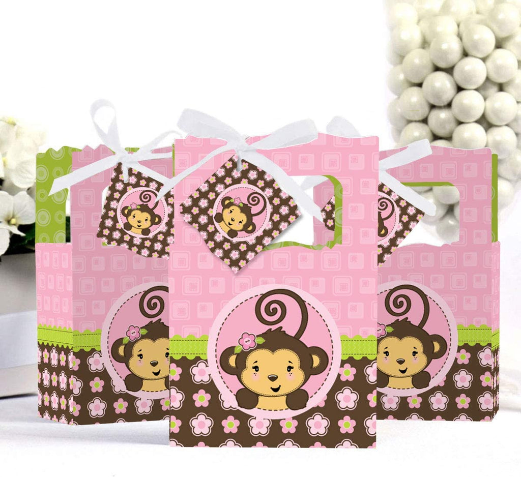 Pink Monkey Girl - Baby Shower or Birthday Party Favor Boxes - Set of 12 is backordered and will ship as soon as it is back in stock.