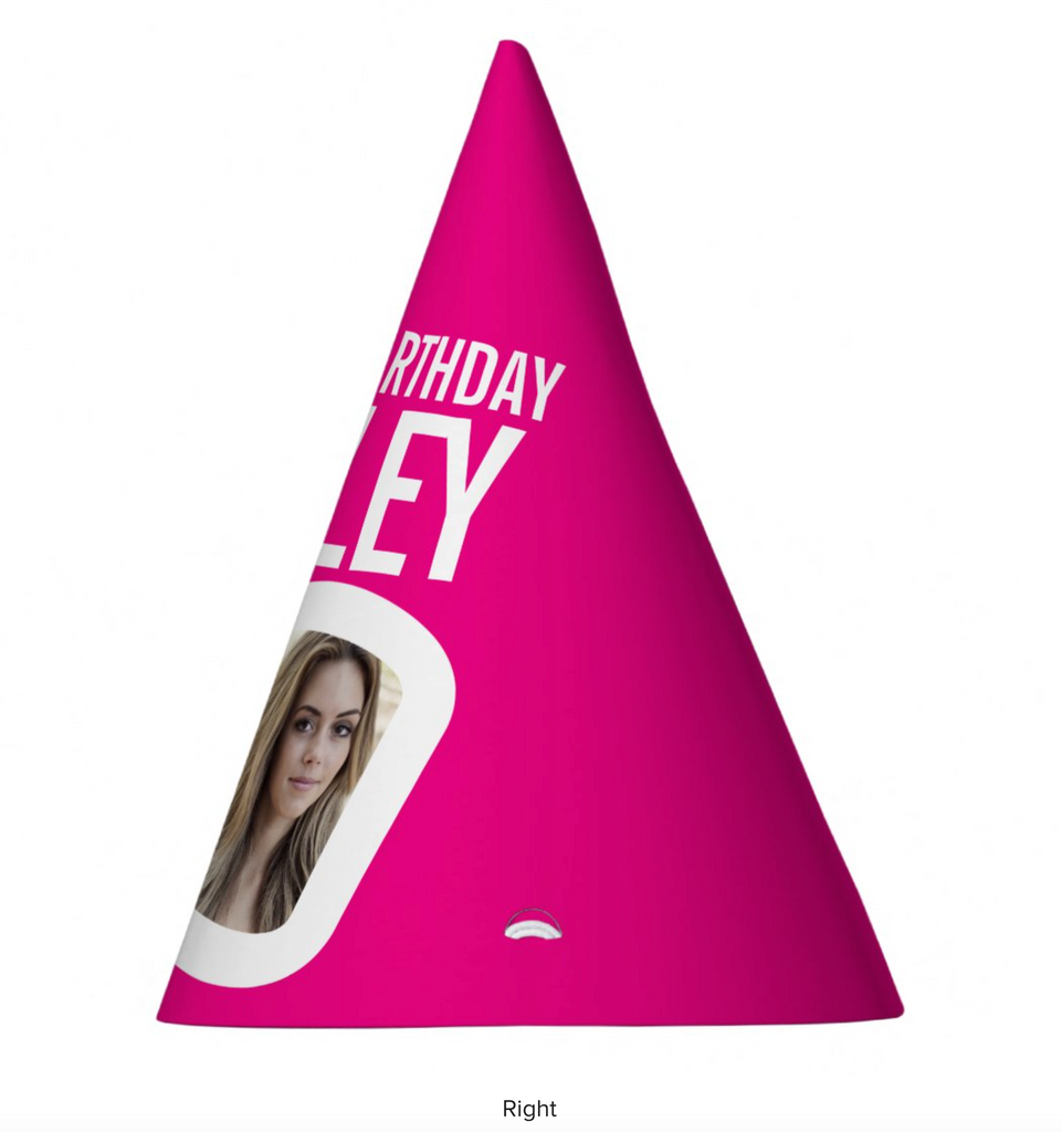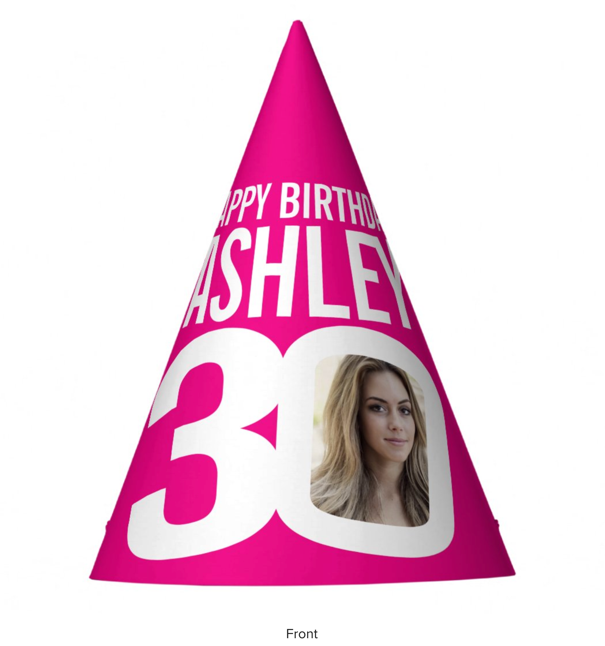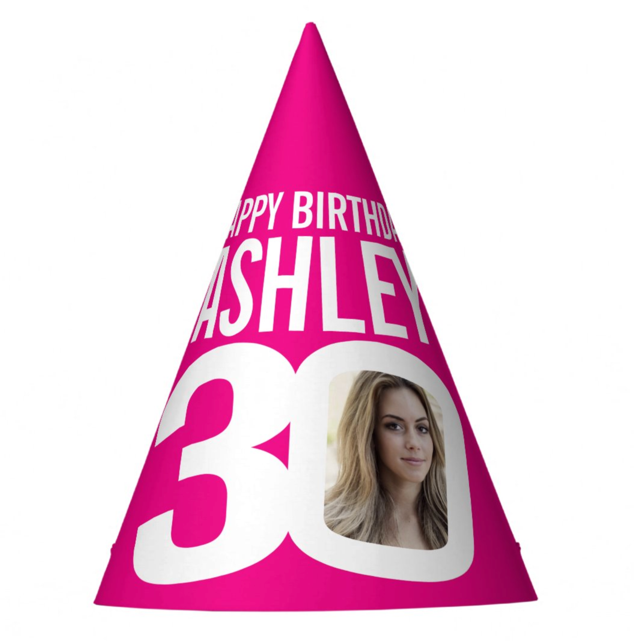 PHA141 30th birthday photo personalized white hot pink party hat - Custom Photo - Set of 8