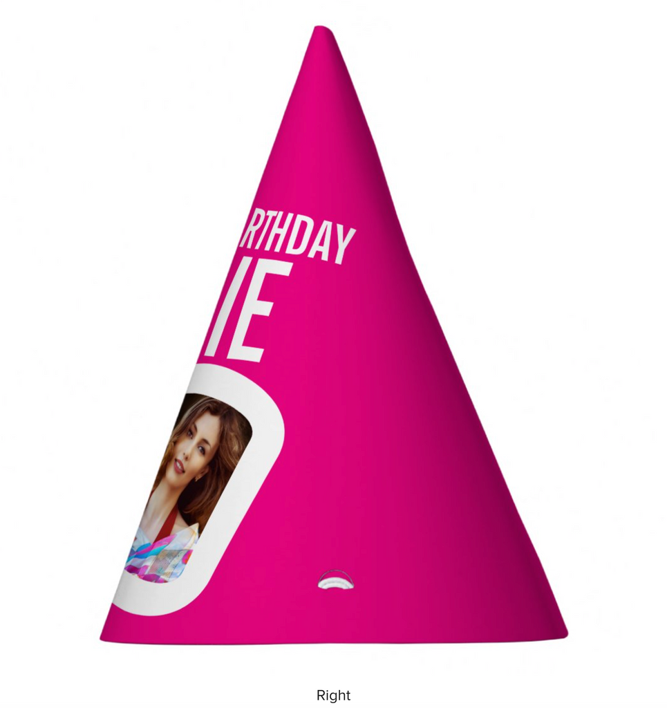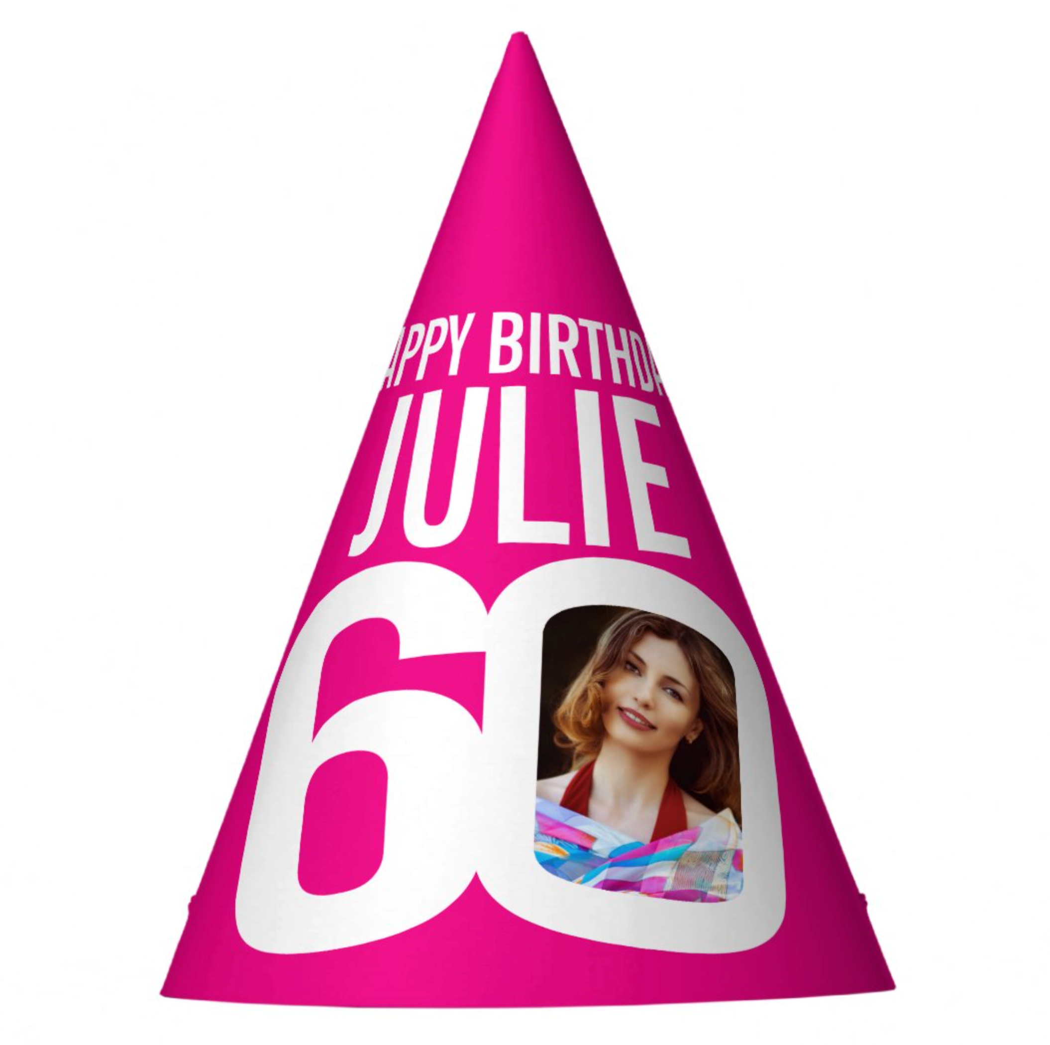 PHA135 60th birthday photo personalized white hot pink party hat - Custom Photo - Set of 8