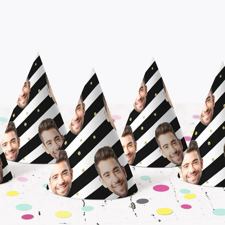 PH368 CUSTOM FACE PARTY HAT - Set of 8 is backordered and will ship as soon as it is back in stock.