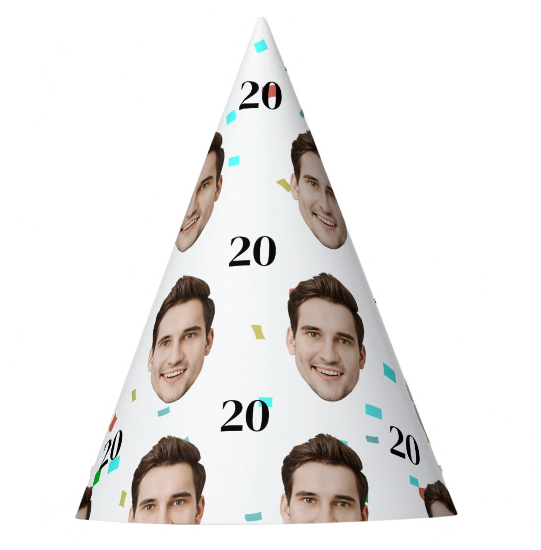 PHA226 Custom Face 20th 30th 40th 50th 60th 70th Birthday Party Hat - Set of 8 (Standard Size)