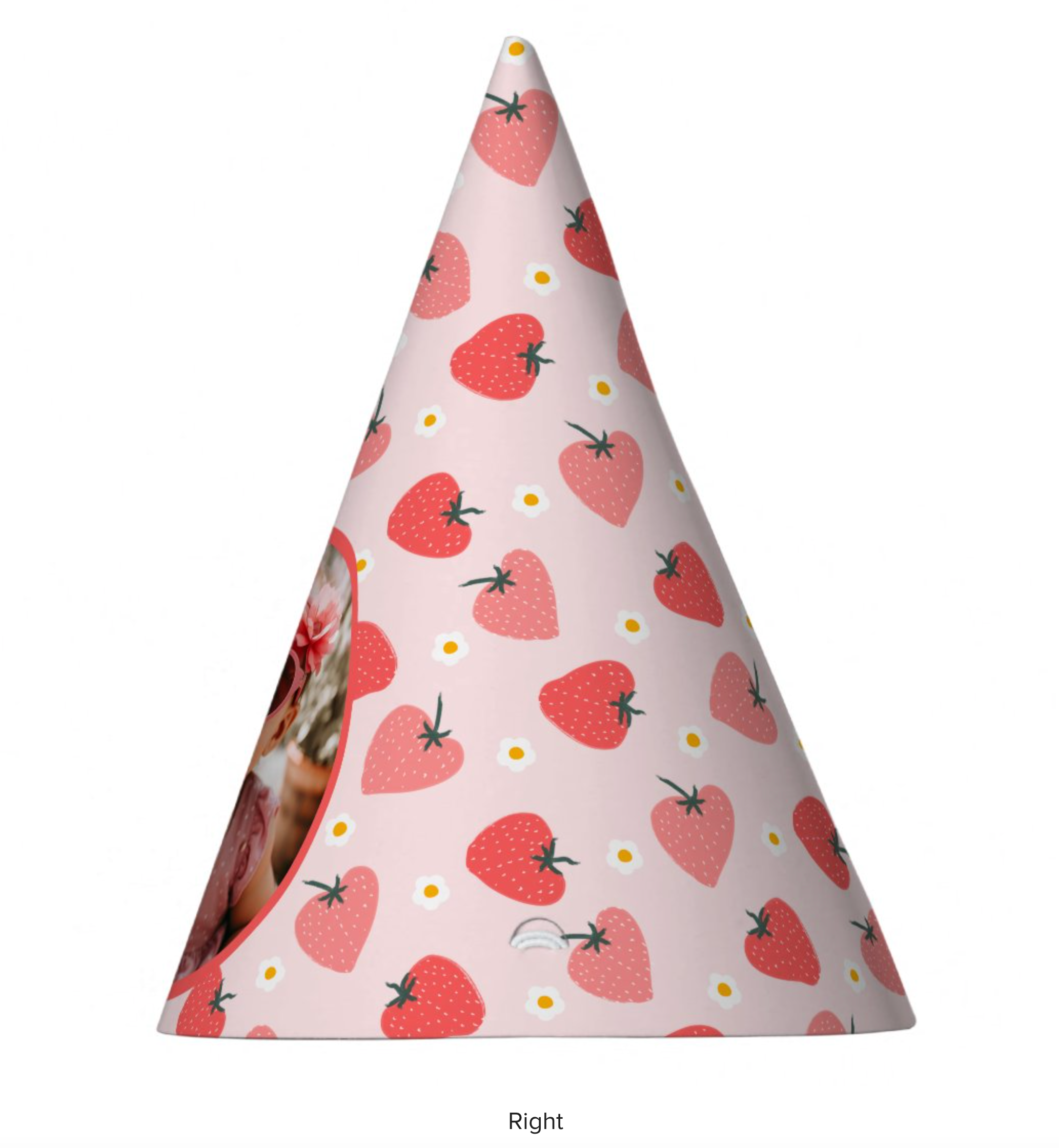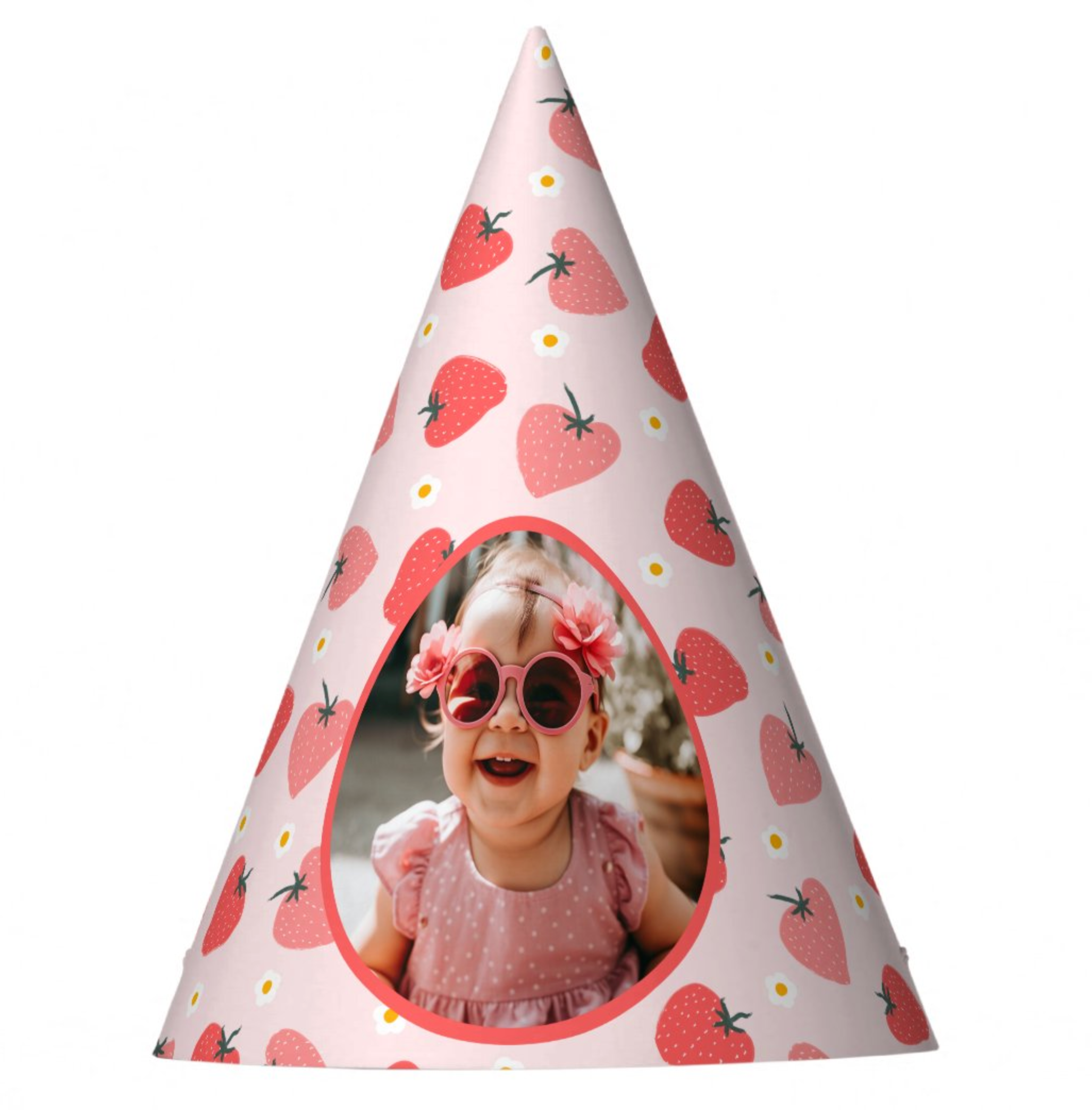 PHA227 Strawberry 1st Birthday Party Berry First Photo Party Hat - Set of 8 (Standard Size)