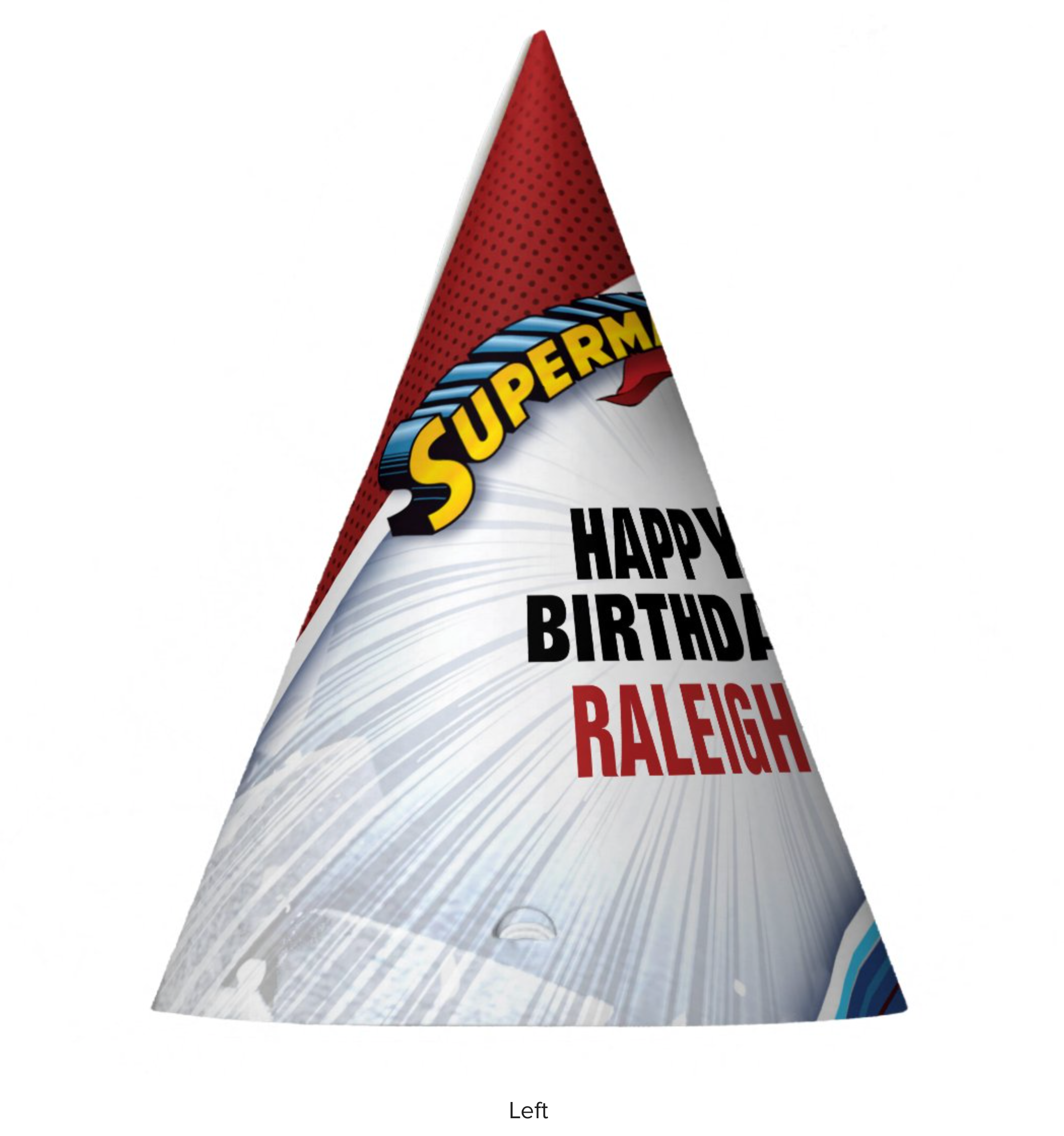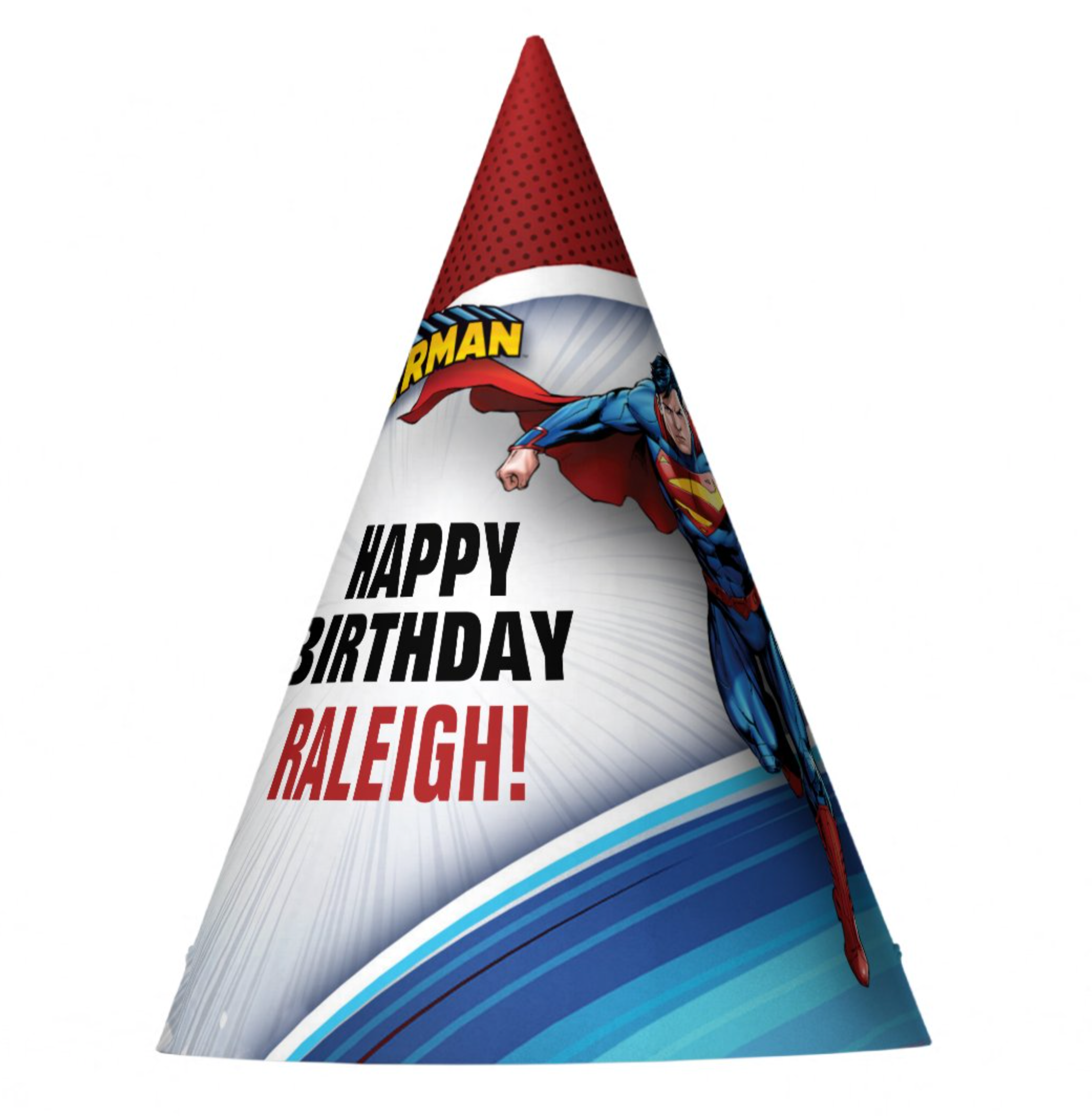 PHA233 DC Comics | Superman - Birthday Party Hat - Custom Name - Set of 8 (Standard Size)