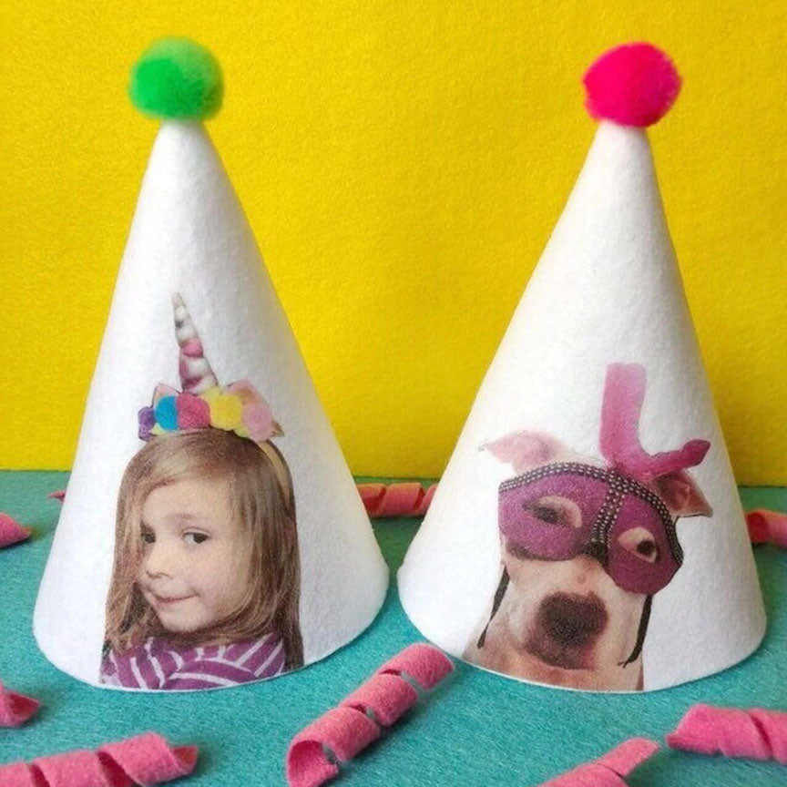 Photo Personalized Felt Party Hats With Fur Ball - Set of 8 is backordered and will ship as soon as it is back in stock.