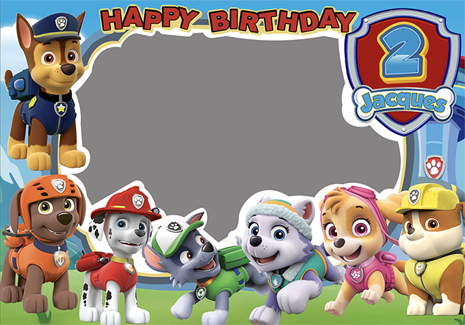 Custom Paw Patrol Happy Birthday Photo Booth Frame is backordered and will ship as soon as it is back in stock.