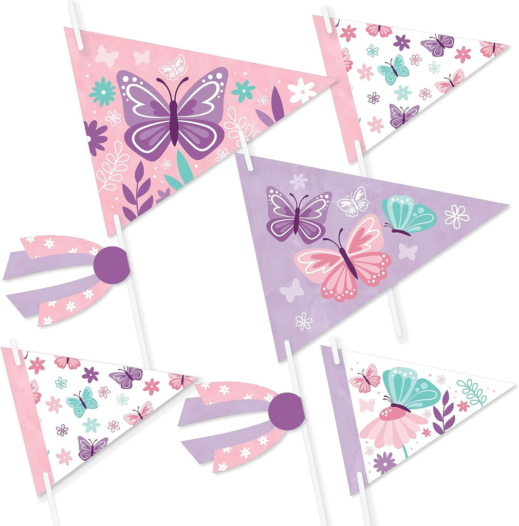 Beautiful Butterfly - Triangle Floral Baby Shower or Birthday Party Photo Props - Pennant Flag Centerpieces - Set of 20