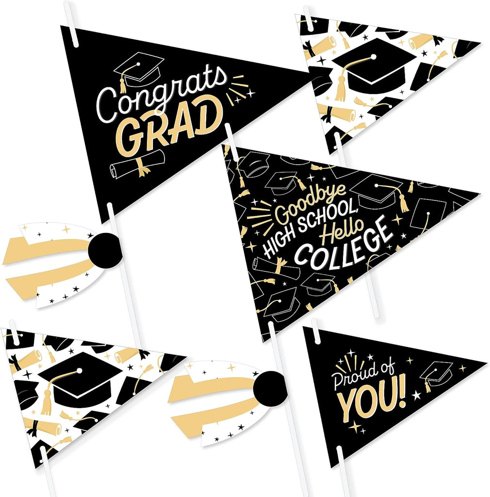 Goodbye High School, Hello College - Triangle Graduation Party Photo Props - Pennant Flag Centerpieces - Set of 20