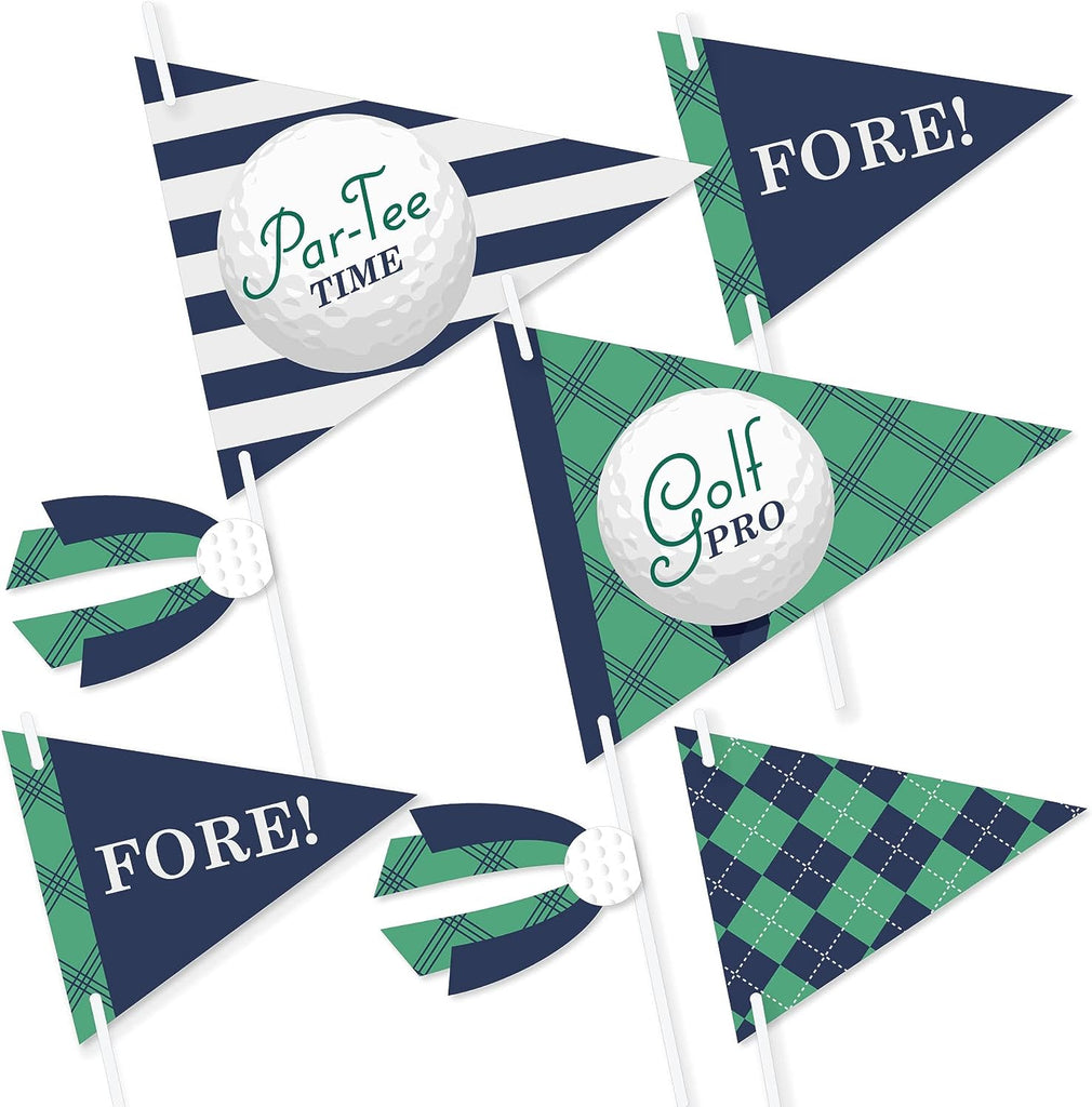 Par-Tee Time - Golf - Triangle Birthday or Retirement Party Photo Props - Pennant Flag Centerpieces - Set of 20