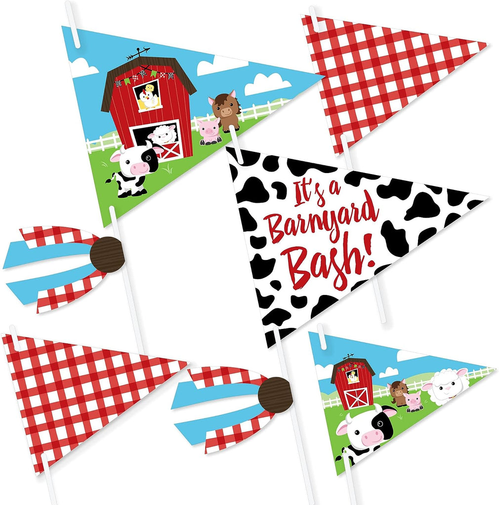 Farm Animals - Triangle Barnyard Baby Shower or Birthday Party Photo Props - Pennant Flag Centerpieces - Set of 20