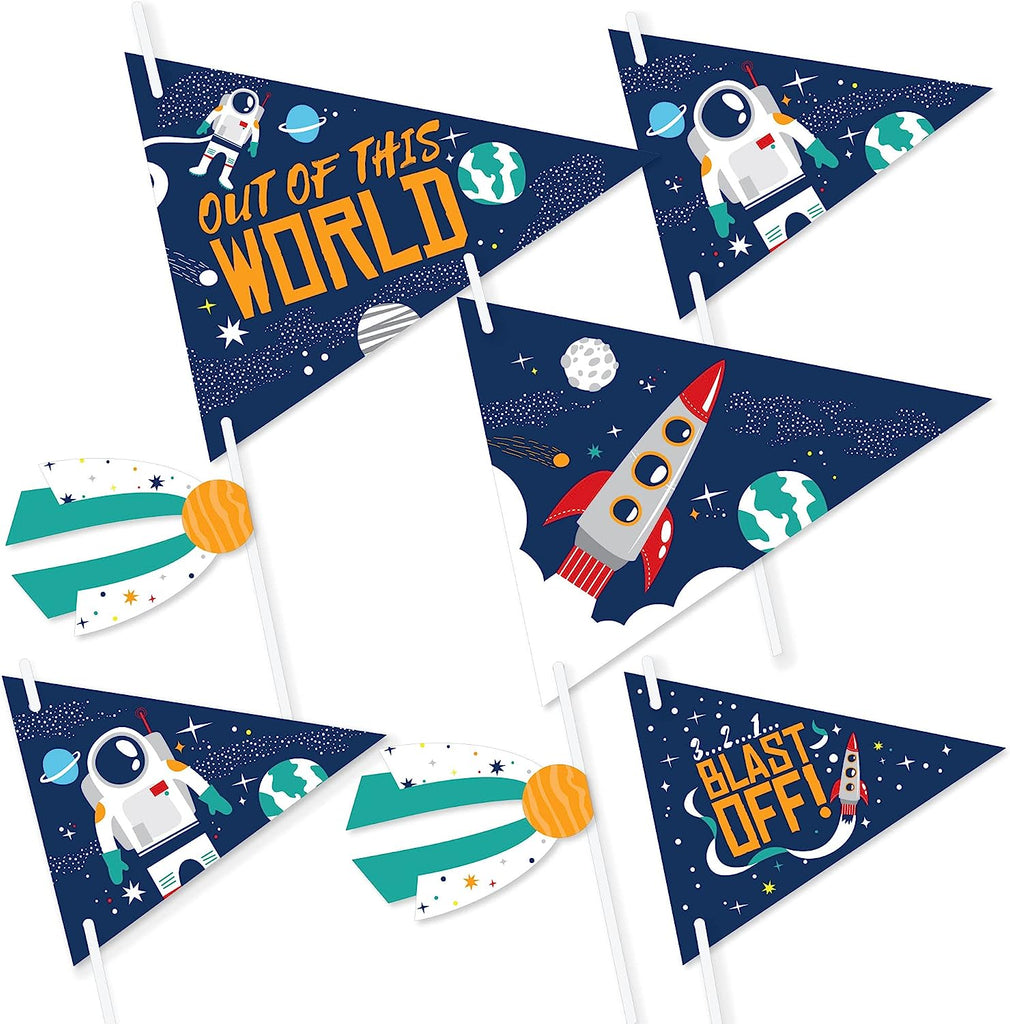 Blast Off to Outer Space - Triangle Rocket Ship Baby Shower or Birthday Party Photo Props - Pennant Flag Centerpieces - Set of 20
