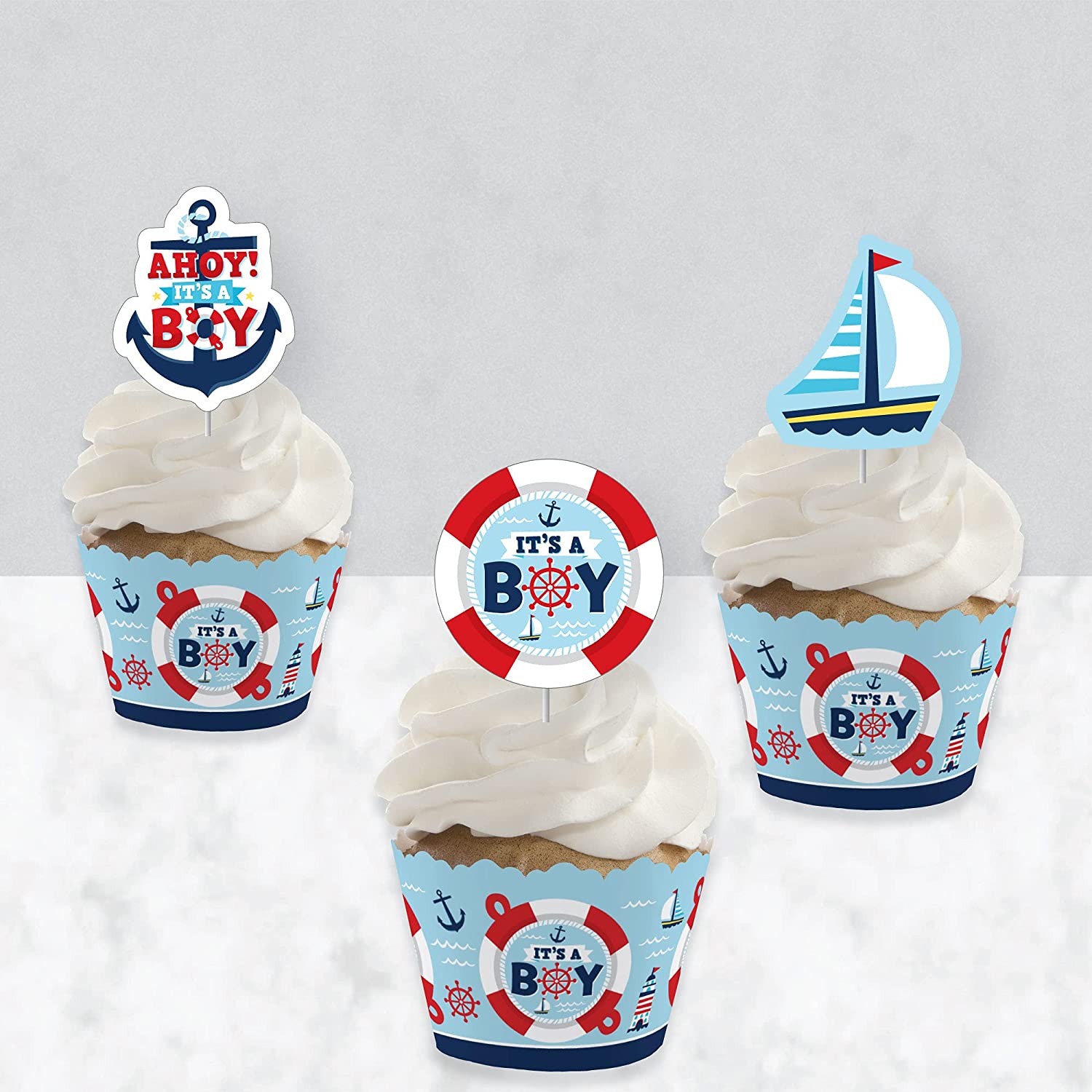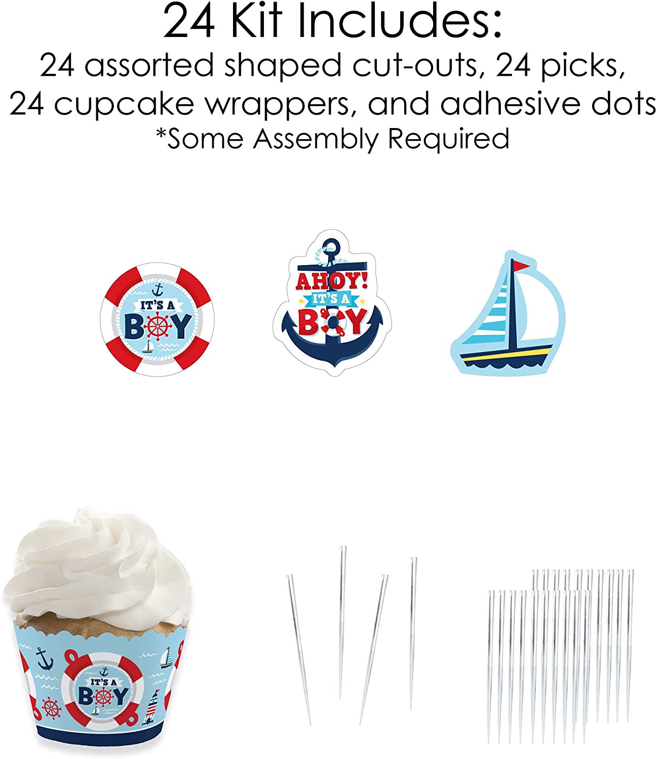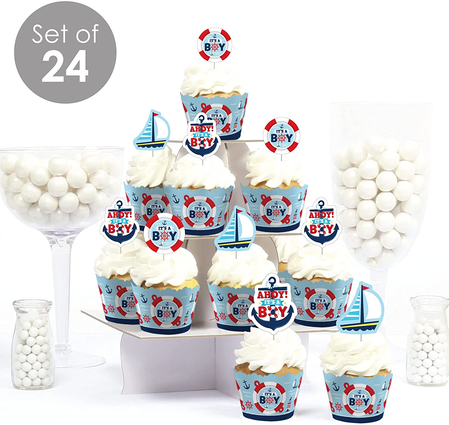 Ahoy It’s a Boy - Cupcake Decoration - Nautical Baby Shower Cupcake Wrappers and Treat Picks Kit - Set of 24 is backordered and will ship as soon as it is back in stock.