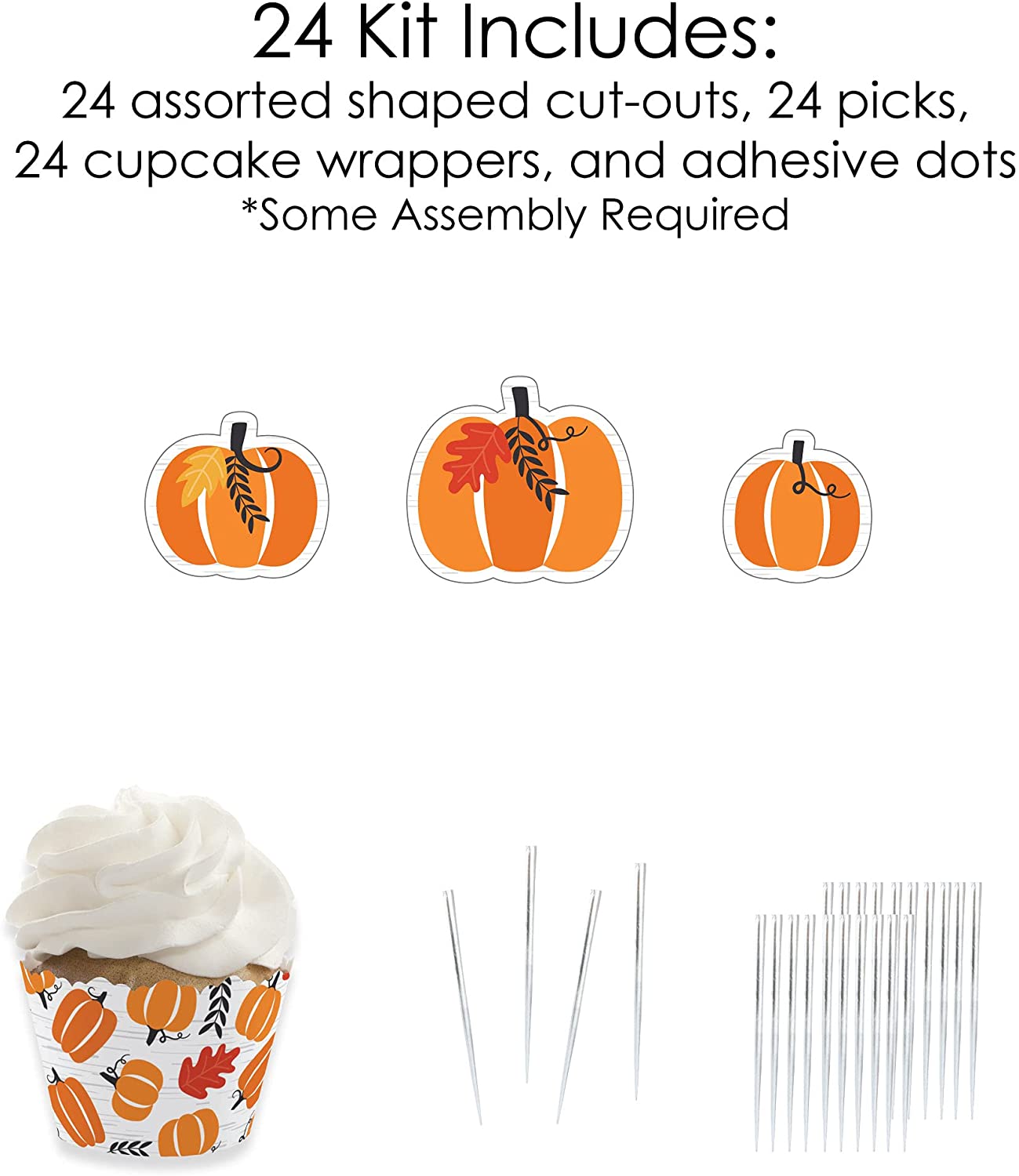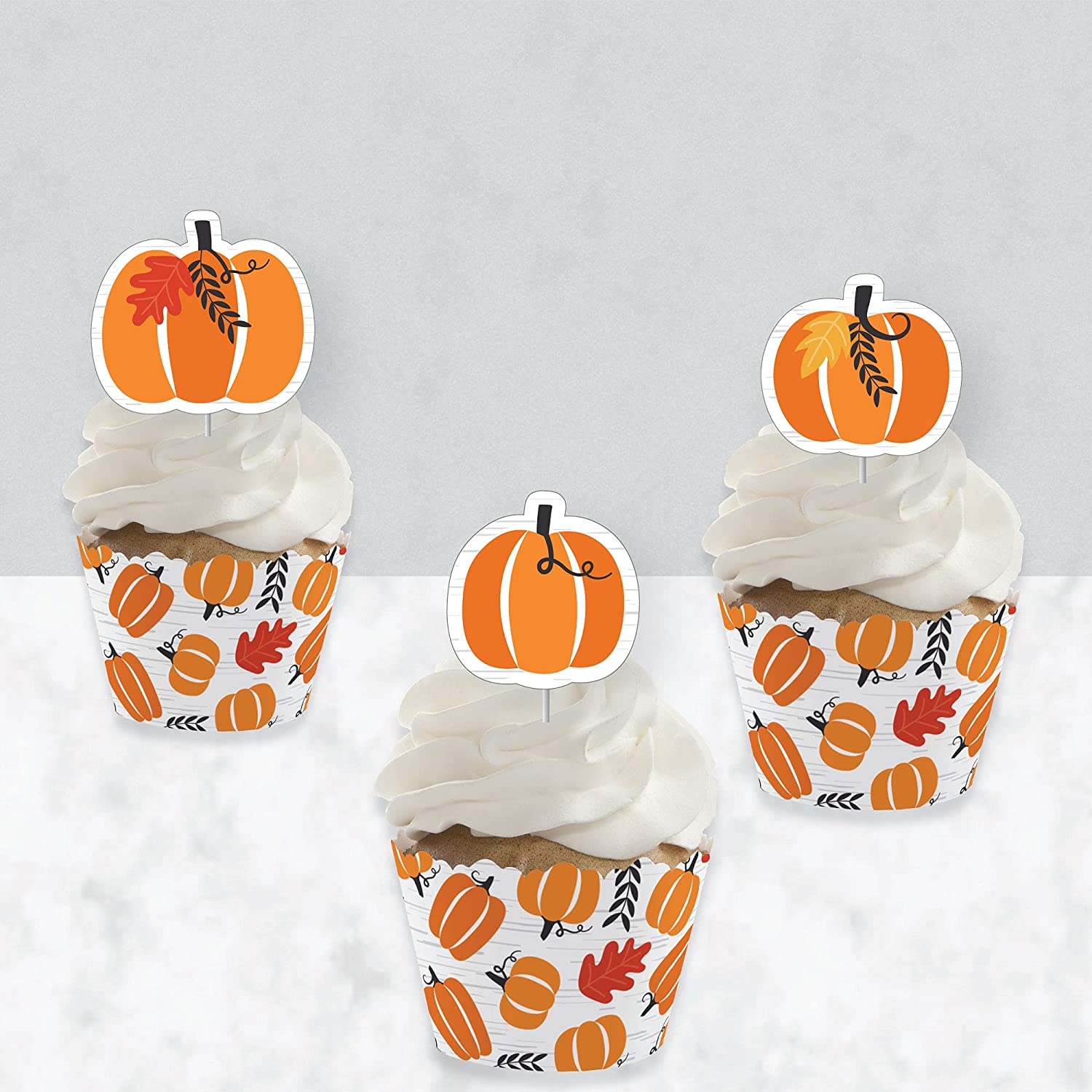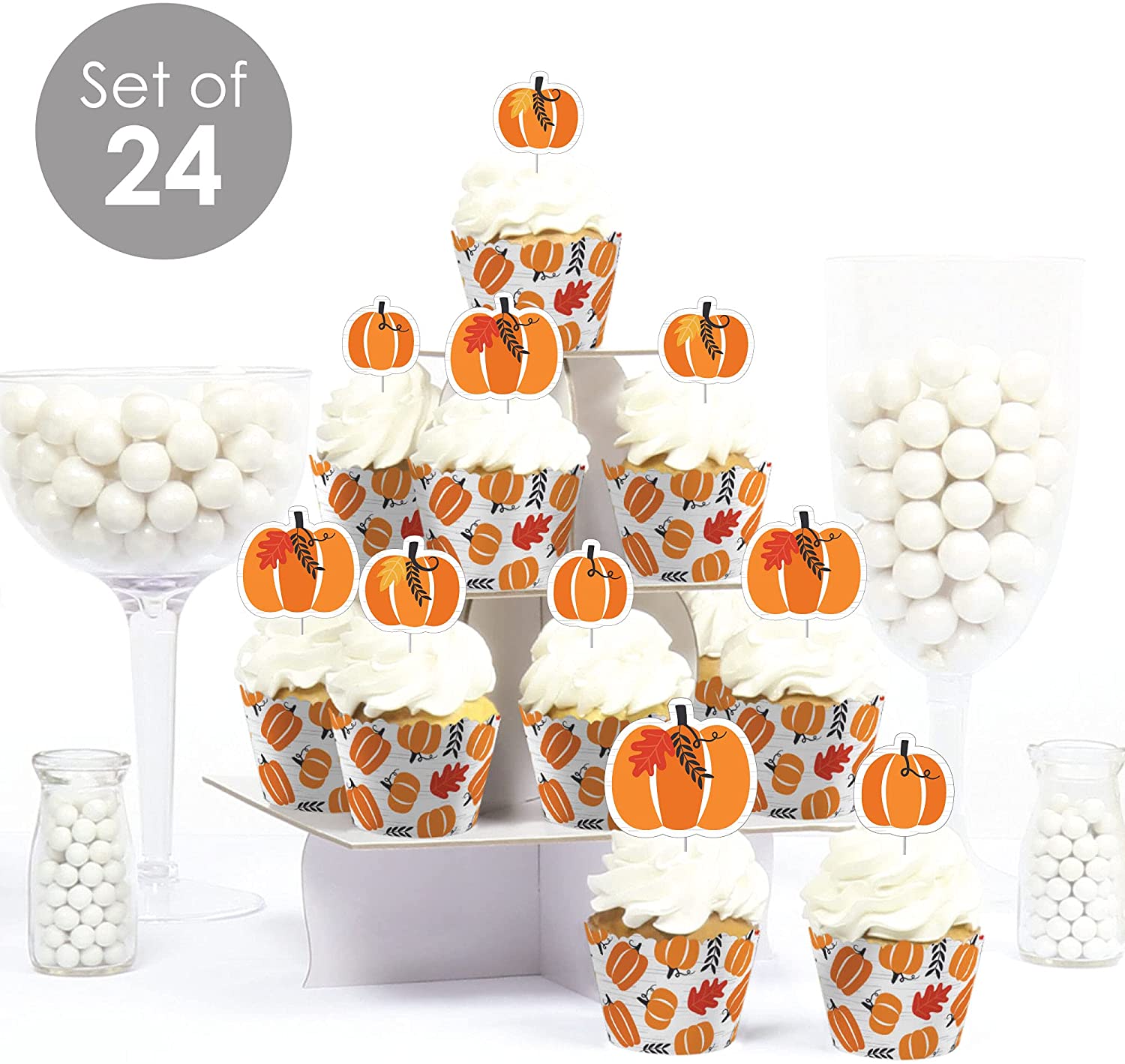 Fall Pumpkin - Cupcake Decoration - Halloween or Thanksgiving Party Cupcake Wrappers and Treat Picks Kit - Set of 24 is backordered and will ship as soon as it is back in stock.