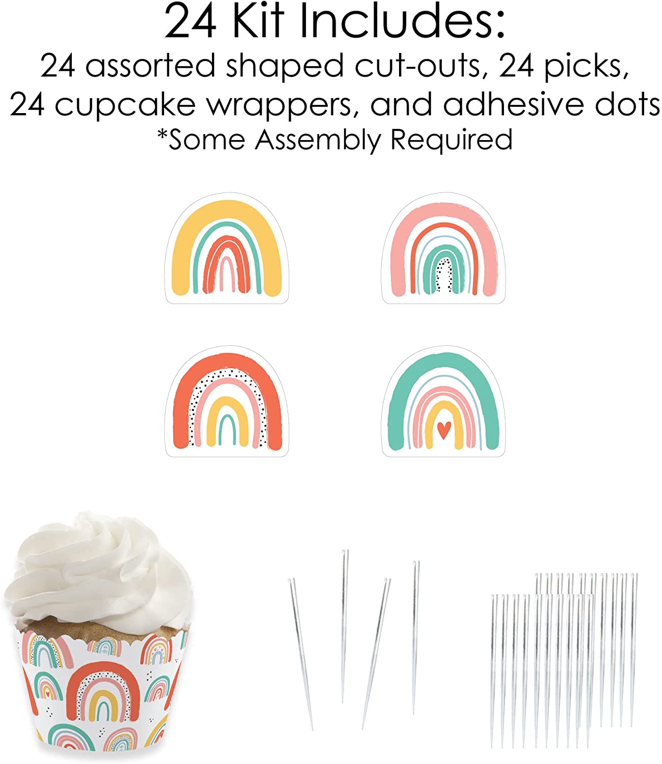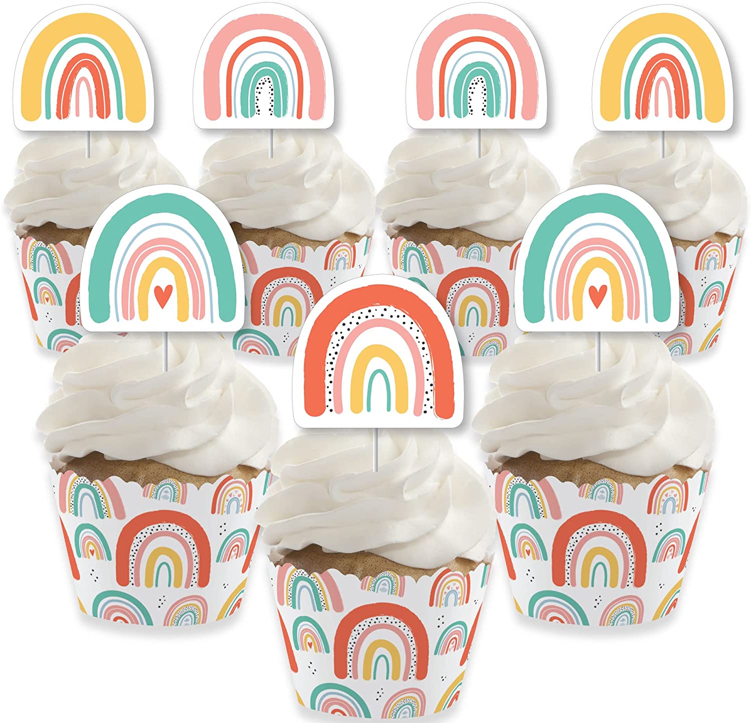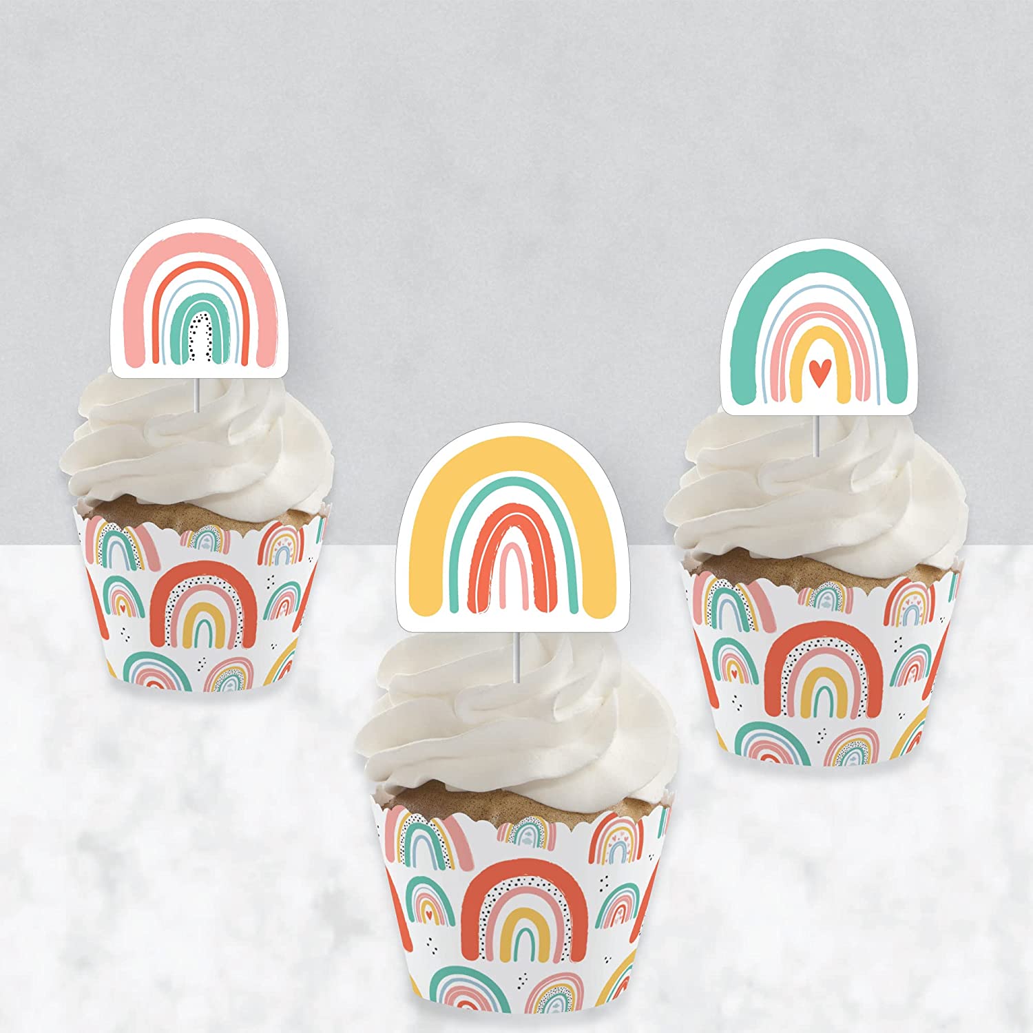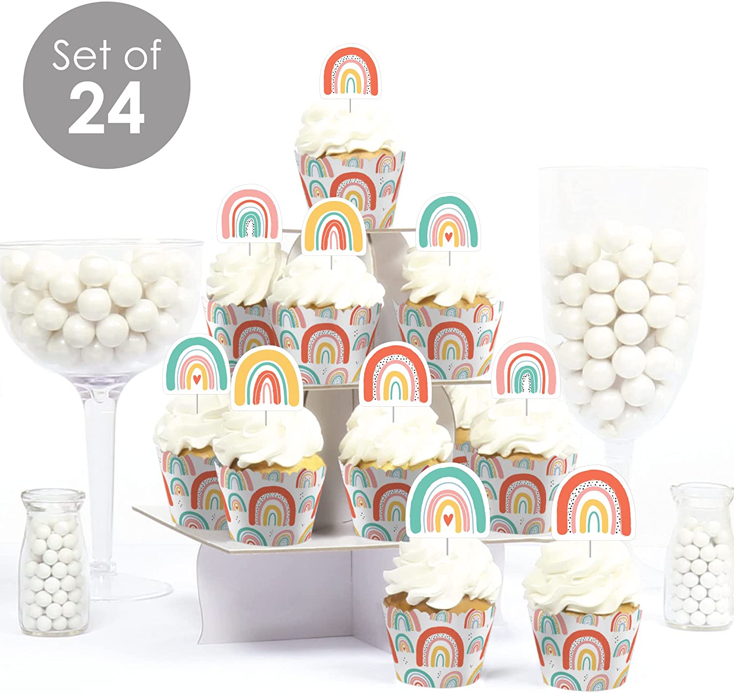 Hello Rainbow - Cupcake Decoration - Boho Baby Shower and Birthday Party Cupcake Wrappers and Treat Picks Kit - Set of 24 is backordered and will ship as soon as it is back in stock.