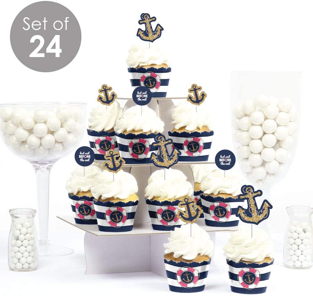 • EASY PARTY DECORATIONS: Last Sail Before The Veil Bridal Shower or Classy Bachelorette Party Cupcake Decoration Kit makes it easy to style a nautical theme party. Use the set of 24 to style the perfect dessert buffet or create impressive cupcake tower centerpieces.