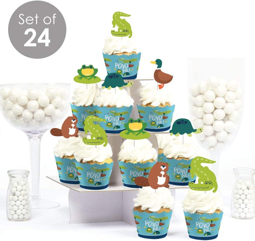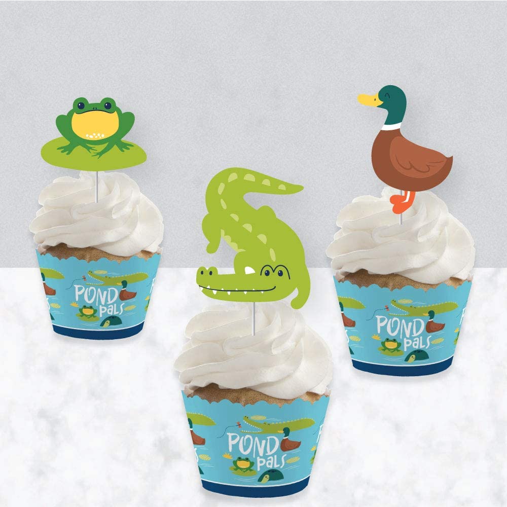 Pond Pals - Cupcake Decoration - Frog, Alligator, Turtle, Beaver and Duck Birthday Party or Baby Shower Cupcake Wrappers and Treat Picks Kit - Set of 24