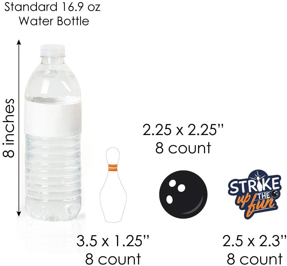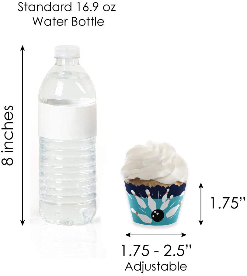 • Plastic clear treat picks SIZE measure 3.5” tall and are packaged in a food-safe environment. Strike Up the Fun - Bowling shaped paper cut-outs vary in size and coordinate well with pick size. Cupcake wrappers are cut with a decorative edge and adjust to fit cupcakes 1.75” - 2.5” Wide. Wrappers measure 1.75” Tall. Wrappers are meant for one-time-use only and should not be baked.