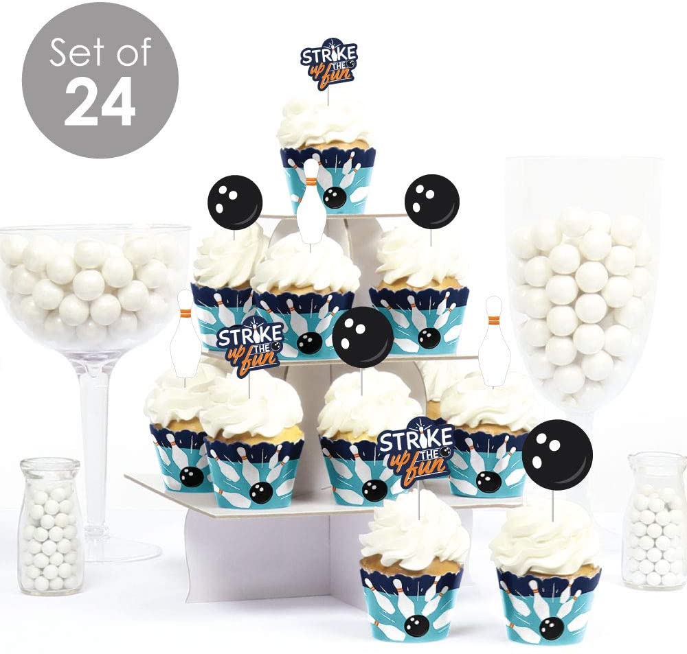 Strike Up the Fun - Bowling - Cupcake Decoration - Birthday Party or Baby Shower Cupcake Wrappers and Treat Picks Kit - Set of 24