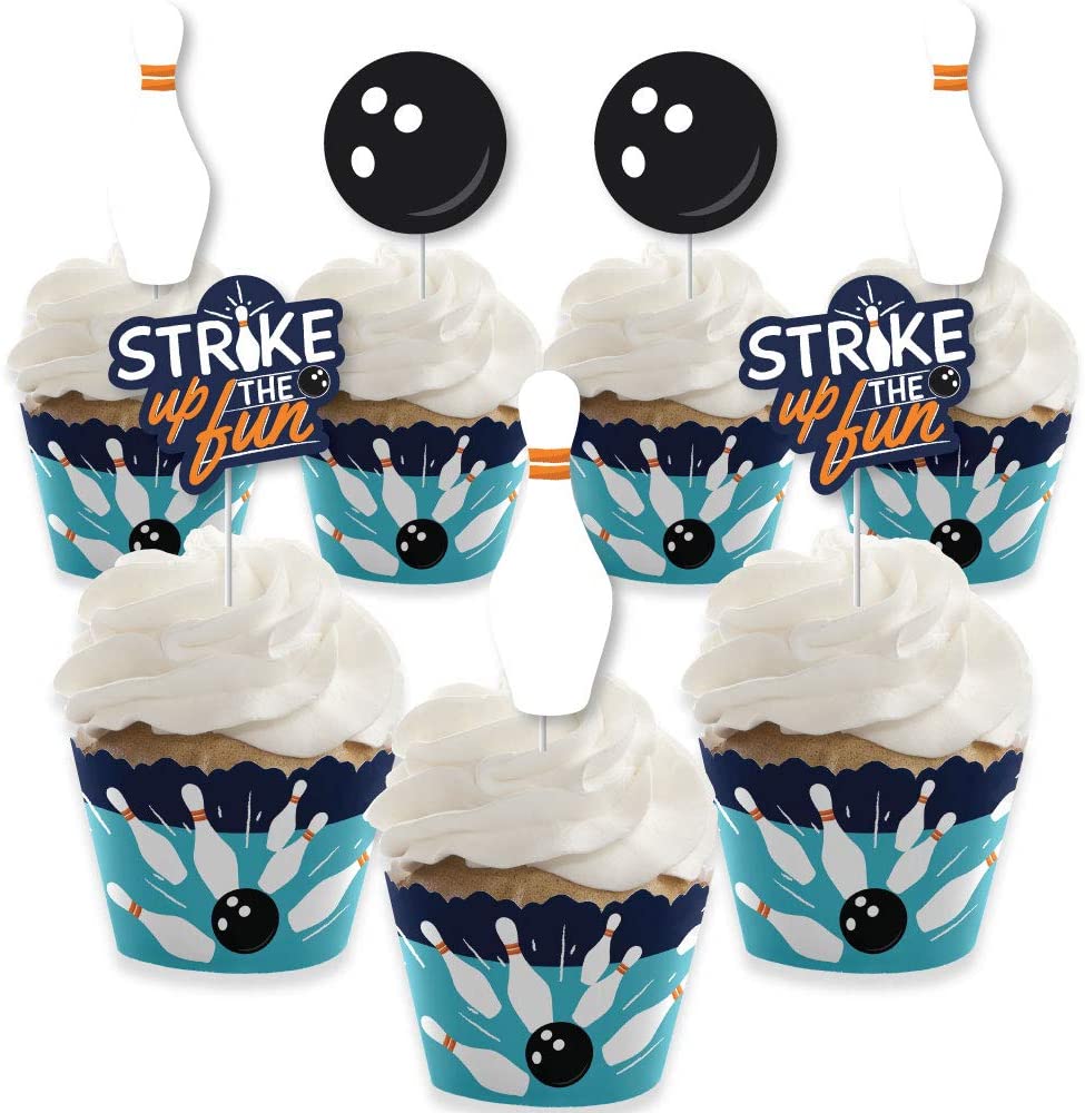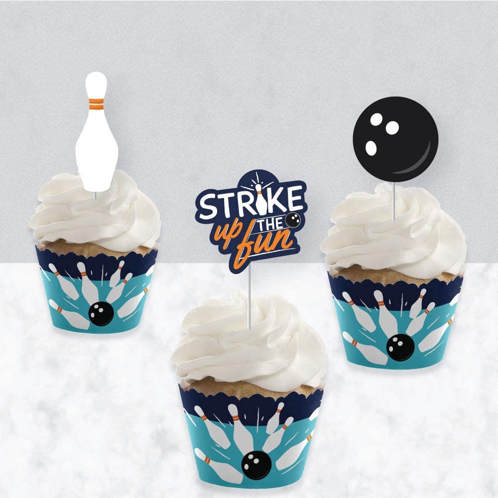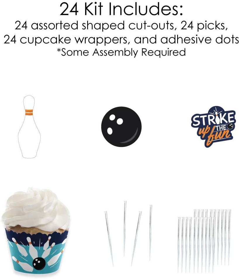 • Strike Up the Fun - Bowling Cupcake Wrappers and Treat Picks Kit INCLUDES 24 assorted shaped paper cut-outs, 24 clear treat picks, 24 cupcake wrappers, and adhesive dots for easy assembly. DIY Strike Up the Fun - Bowling cupcake decoration kit is perfect for any baby shower or birthday party.