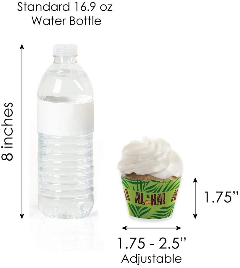 • Plastic clear treat picks SIZE measure 3.5” tall and are packaged in a food-safe environment. Tiki Luau shaped paper cut-outs vary in size and coordinate well with pick size. Cupcake wrappers are cut with a decorative edge and adjust to fit cupcakes 1.75” - 2.5” Wide. Wrappers measure 1.75” Tall. Wrappers are meant for one-time-use only and should not be baked.
