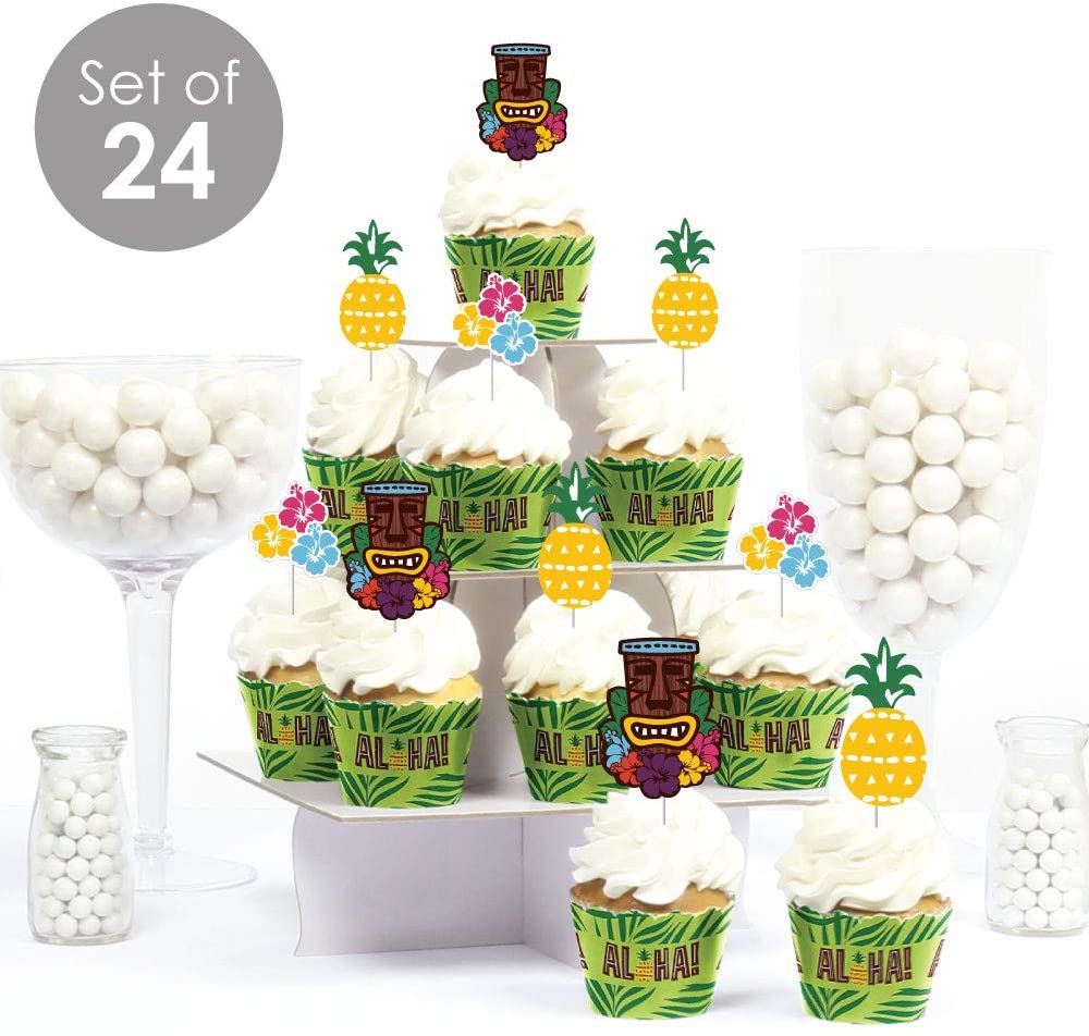 Tiki Luau - Cupcake Decoration - Tropical Hawaiian Summer Party Cupcake Wrappers and Treat Picks Kit - Set of 24