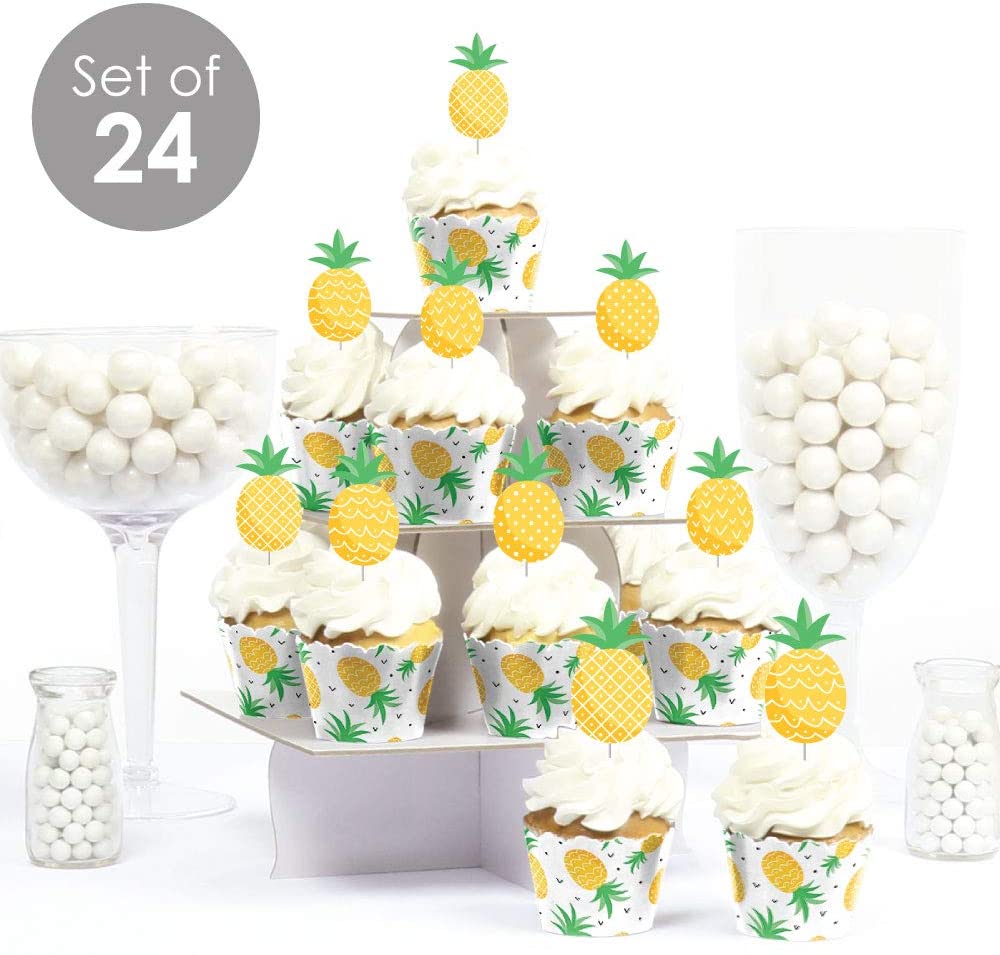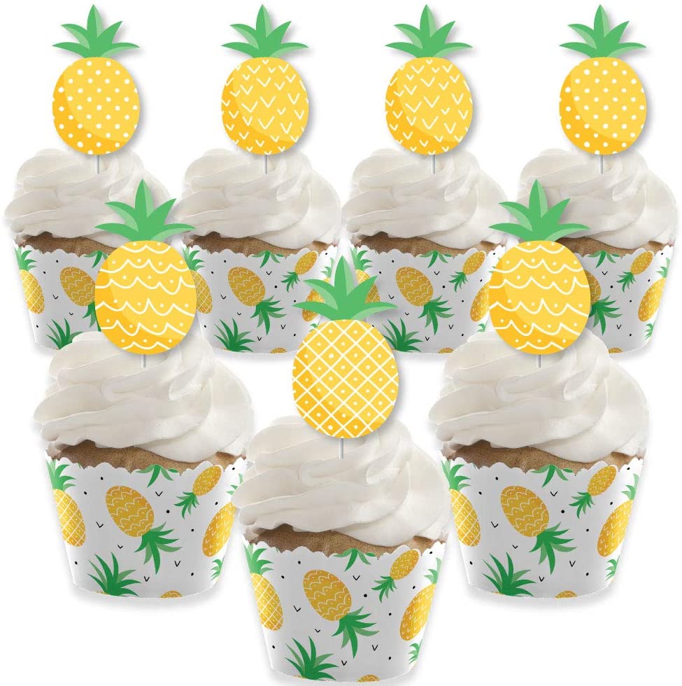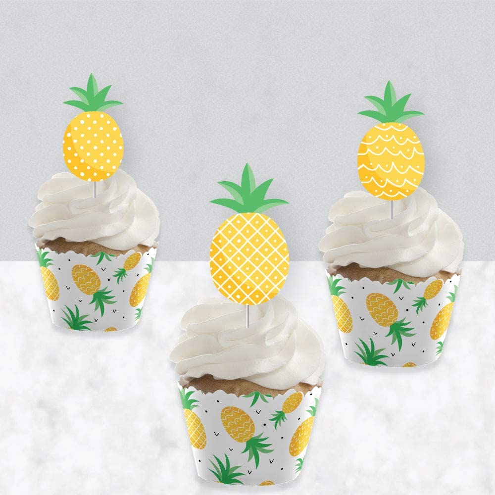 Tropical Pineapple - Cupcake Decoration - Summer Party Cupcake Wrappers and Treat Picks Kit - Set of 24