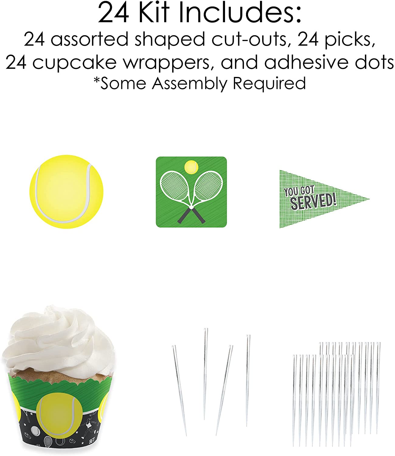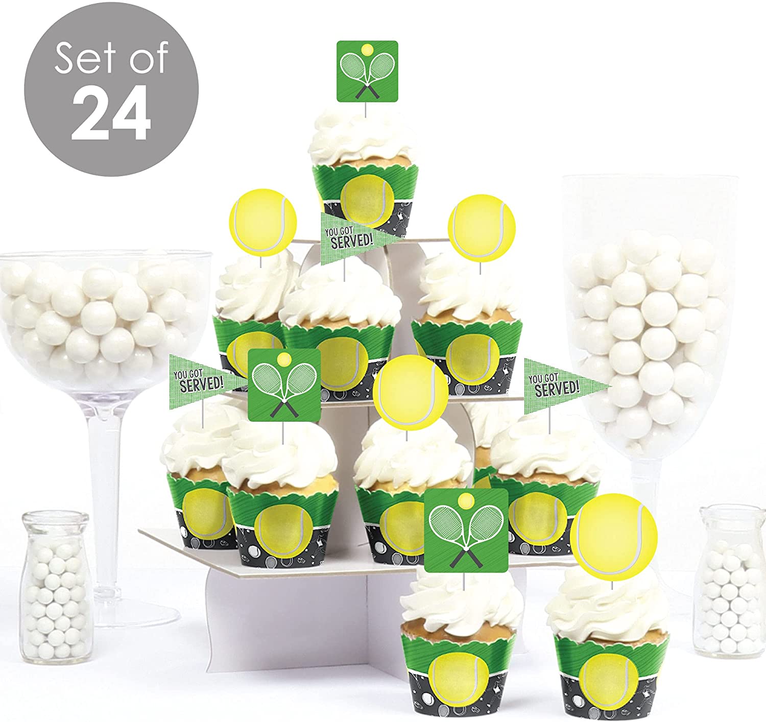 You Got Served - Tennis - Cupcake Decoration - Baby Shower or Tennis Ball Birthday Party Cupcake Wrappers and Treat Picks Kit - Set of 24 is backordered and will ship as soon as it is back in stock.