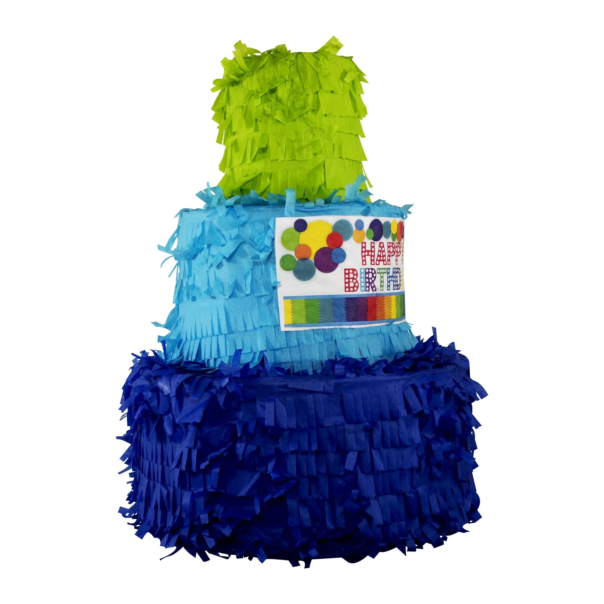 Add an element of fun to your child's special day with this Party Pinatas Birthday Cake Pinata. It's made of high-quality paper and is disposable, making the clean-up afterward, quick and easy. This party pinata comes in the shape of a three-tier cake with candles on top and the words Happy Birthday on the front in vibrant colors. Simply fill it with treats and party favors and then let the fun begin.