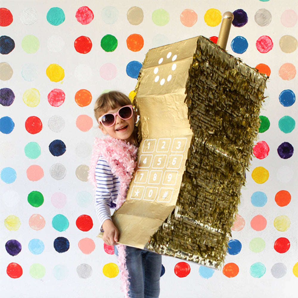 A vintage cell phone piñata! It’s a throw back to days when moms were stuck carrying these bricks around in their purses. Your kids may not understand how far we’ve come in the last 20 years, but they’ll still love breaking this piñata apart!