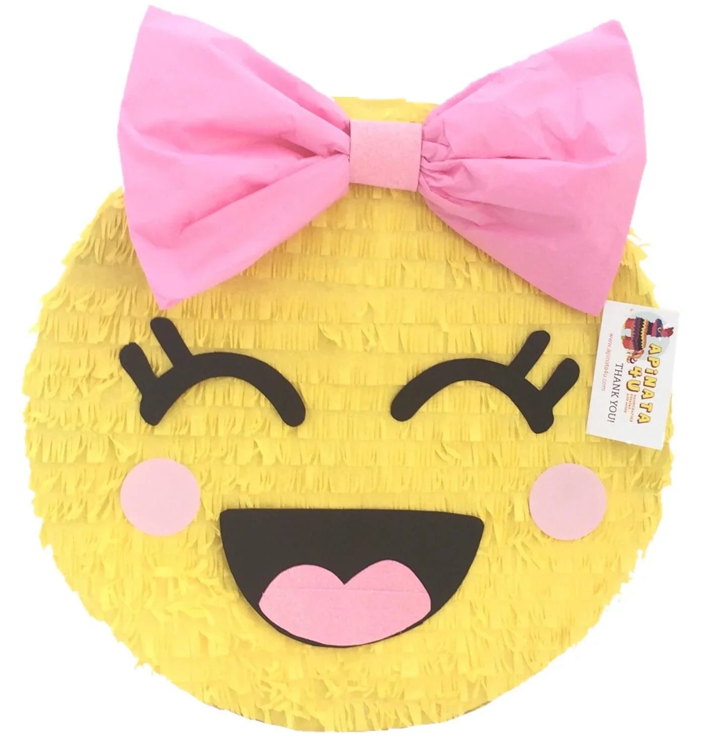 Girly Emoticon Pinata With Pink Bow is backordered and will ship as soon as it is back in stock.