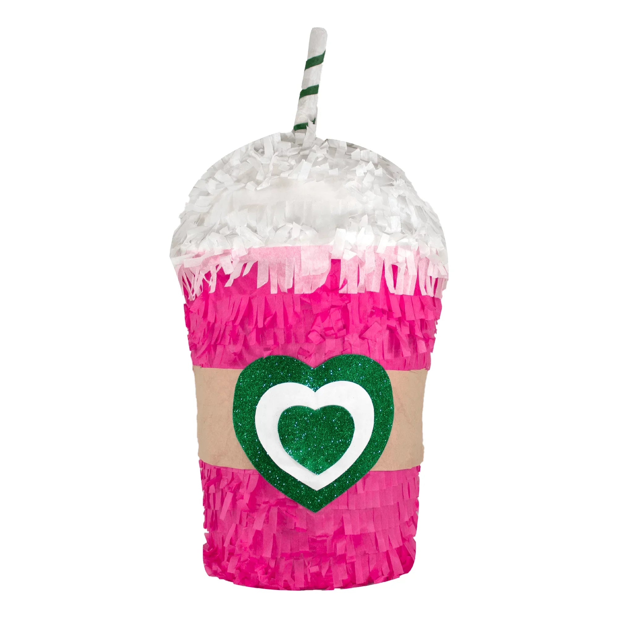 Bring the wonder and excitement of a classic pinata to your next special event! This Pink Latte Party Pinata is covered in traditional crepe paper for an authentic Mexican pinata that's sure to thrill adults and kids alike. Your pinata comes with a small opening so that you can fill it with candy, small toys, or any fun-sized treats. Try filling it with treats to match your party theme for an extra special birthday party or celebration! To crack open your pull string pinata, try using a baseball bat, or small rod as your pinata stick. Whether you hang it from a tree or on the ceiling, prepare to have a blast watching your guests dance around blindfolded, looking for this playful pinata!
