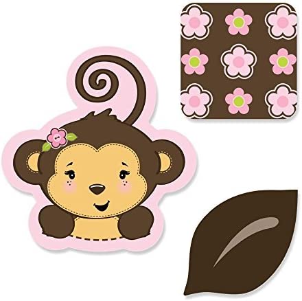 Pink Monkey Girl - DIY Shaped Baby Shower or Birthday Party Cut-Outs - 24 Count