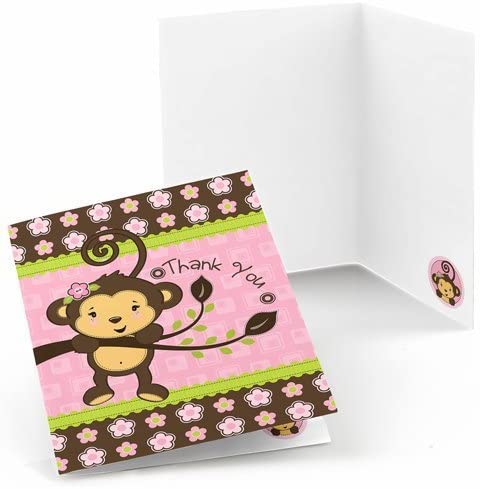 Pink Monkey Girl - Baby Shower or Birthday Party Thank You Cards (8 count)