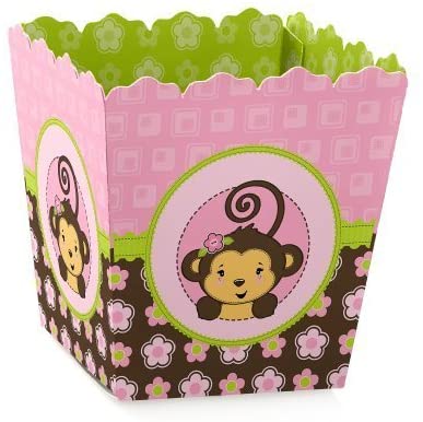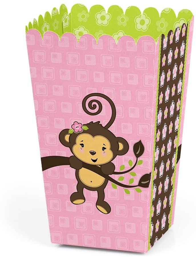Pink Monkey Girl - Baby Shower or Birthday Favor Popcorn Treat Boxes - Set of 12