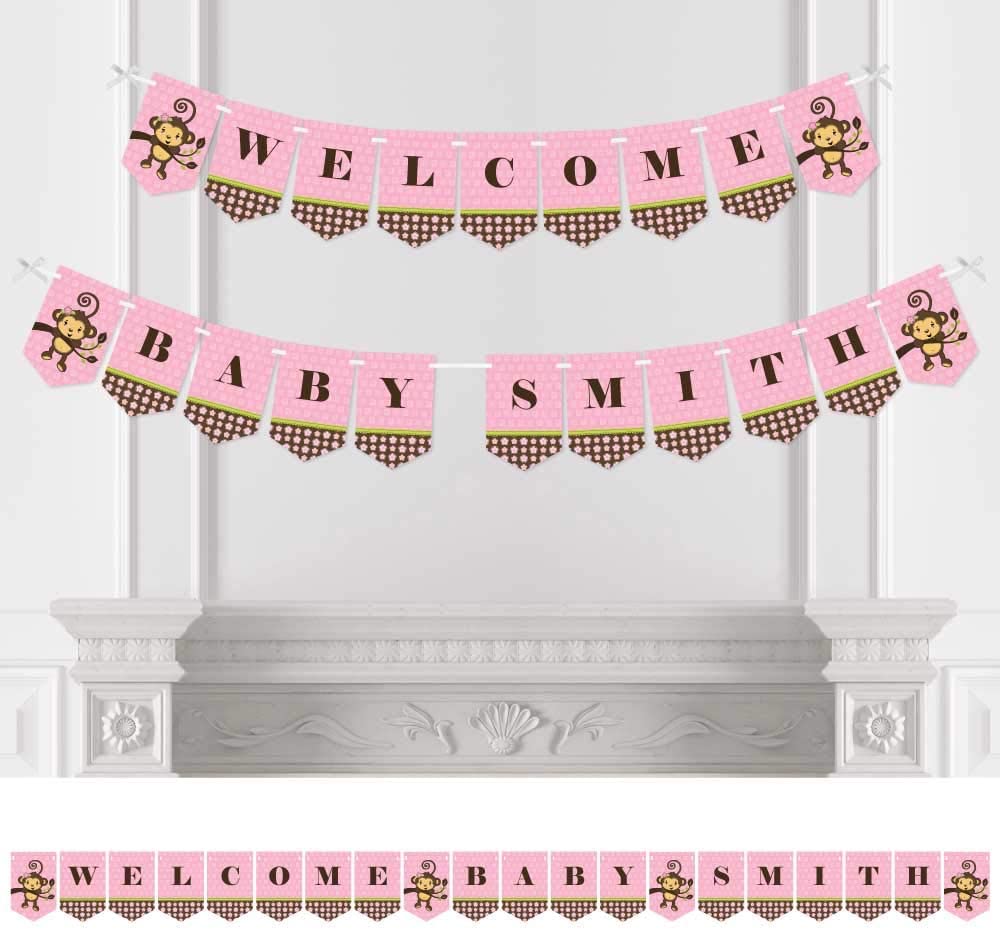 Custom Pink Monkey Girl - Personalized Girl Baby Shower Bunting Banner and Decorations - Welcome Baby Custom Name Banner