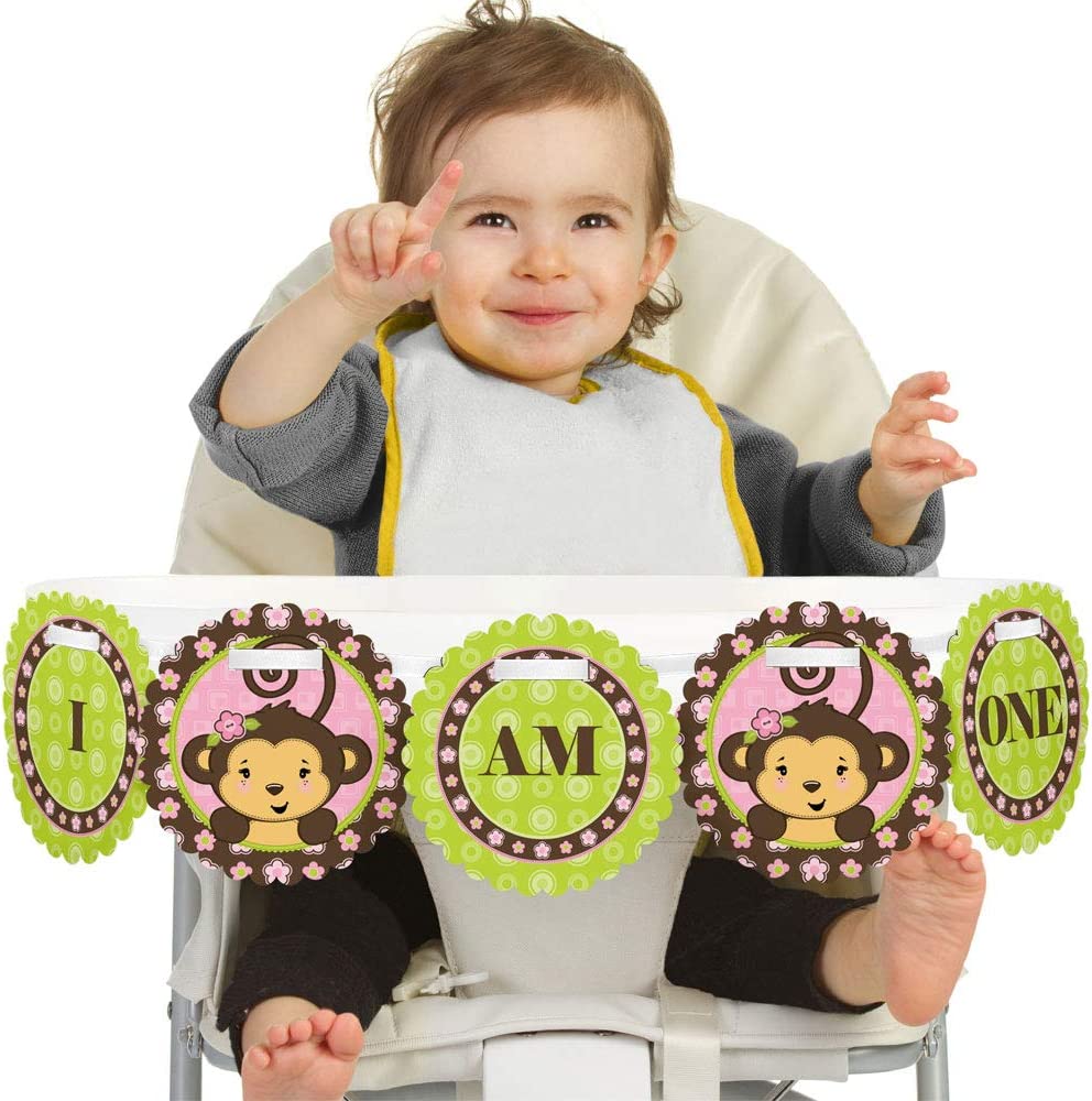 Pink Monkey Girl 1rst Birthday Highchair Decor - I Am One - First Birthday High Chair Banner