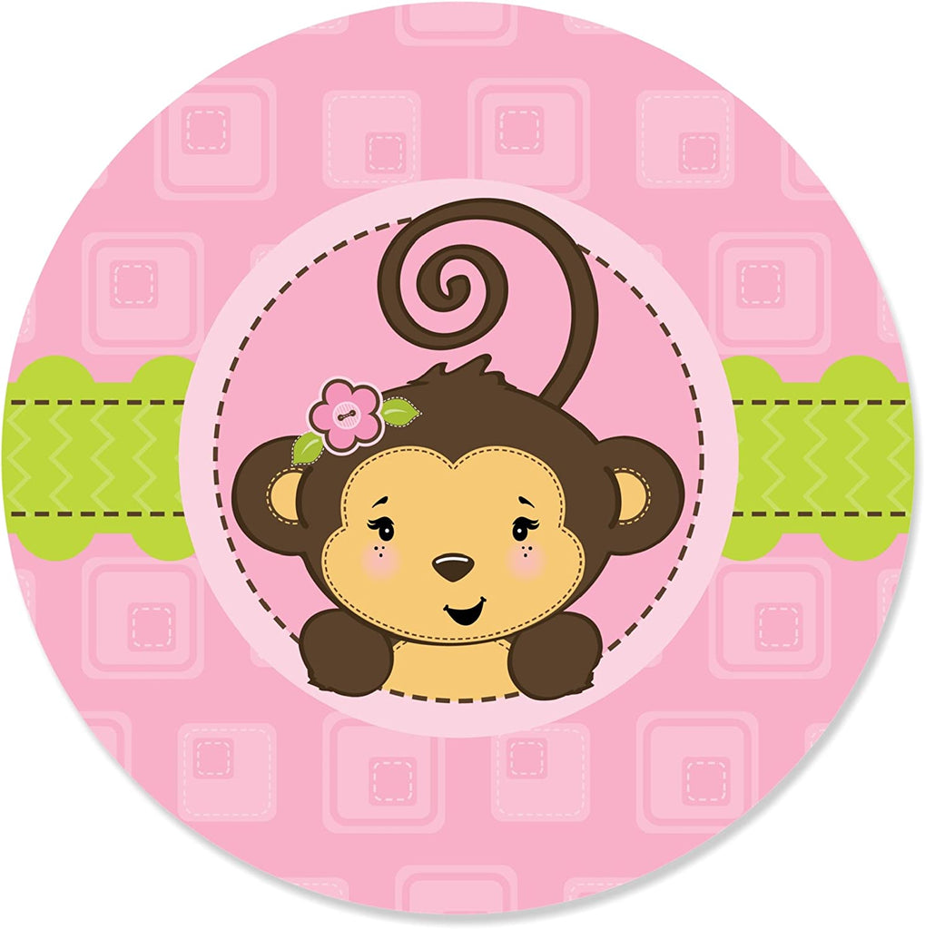 Pink Monkey Girl - Baby Shower or Birthday Party Circle Sticker Labels - 24 Count