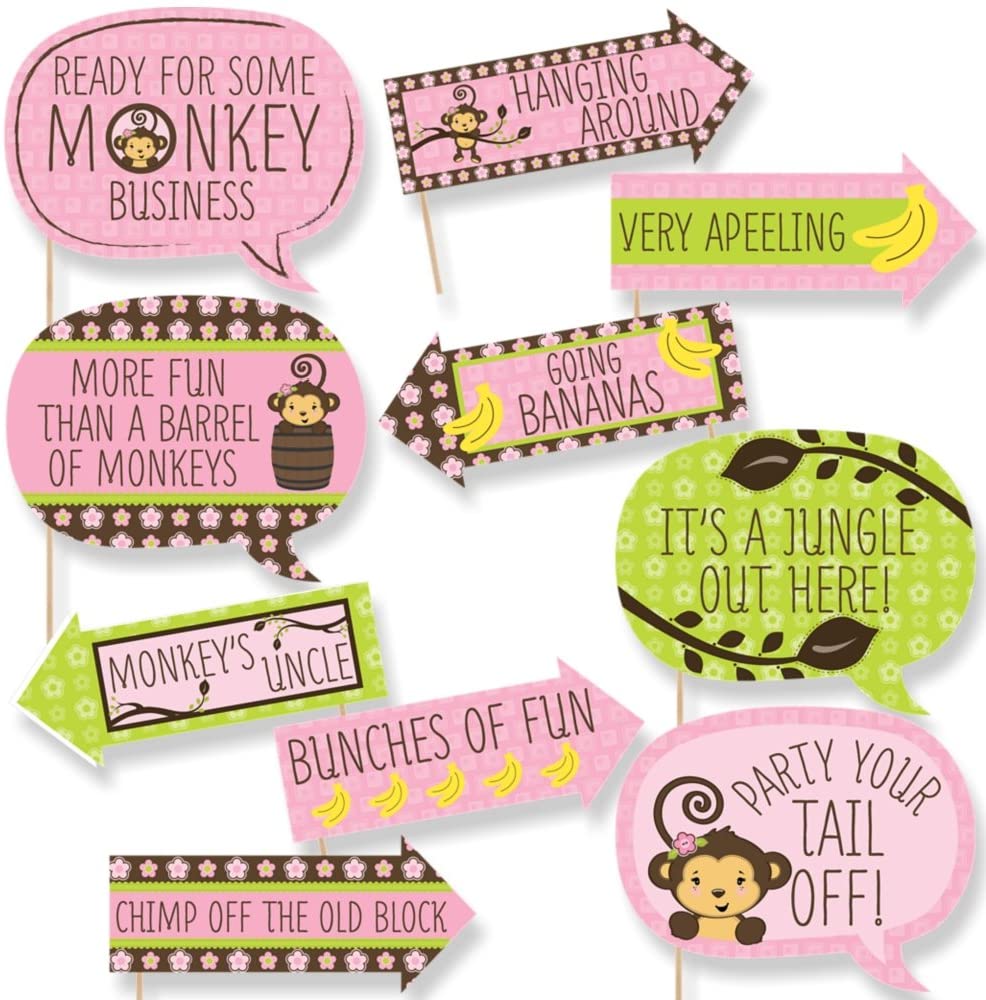 Pink Monkey Girl - Monkey Decorations DIY Baby Shower or Birthday Party Essentials - Set of 20